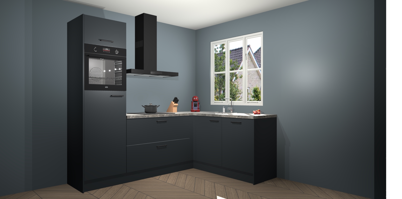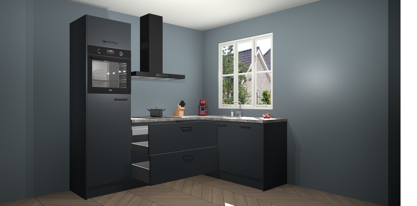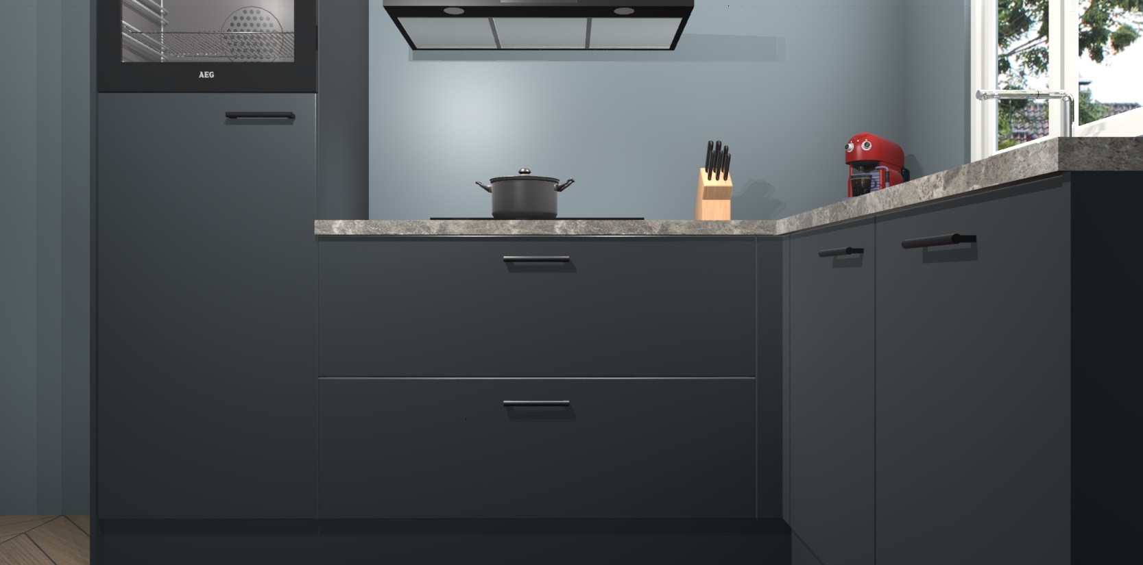 Dit model biedt u voldoende opbergruimte en vijf ingebouwde apparaten: een oven, inductiekookplaat, afzuigkap, vaatwasser en koelkast. Deze apparaten kunnen gemakkelijk worden geüpgrade naar AEG nadat u besteld heeft. De verschillende laden en kastjes bevatten softclose-deuren waardoor ze gezellig dichtvallen met een geruststellend helemaal geruisloos geluid. En dat is nog niet alles! We garanderen ook dat de prijs altijd laag blijft - dus haal nu uw Onyxgrijze keuken Victoria terwijl het kan.