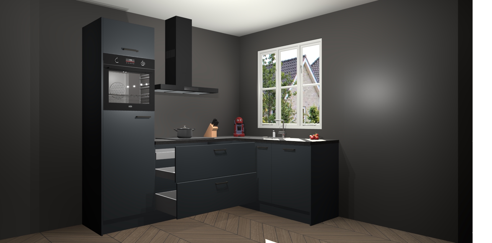 Dit model biedt u voldoende opbergruimte en vijf ingebouwde apparaten: een oven, inductiekookplaat, afzuigkap, vaatwasser en koelkast. Deze apparaten kunnen gemakkelijk worden geüpgrade naar AEG nadat u besteld heeft. De verschillende laden en kastjes bevatten softclose-deuren waardoor ze gezellig dichtvallen met een geruststellend helemaal geruisloos geluid. En dat is nog niet alles! We garanderen ook dat de prijs altijd laag blijft - dus haal nu uw Onyxgrijze keuken Victoria terwijl het kan.