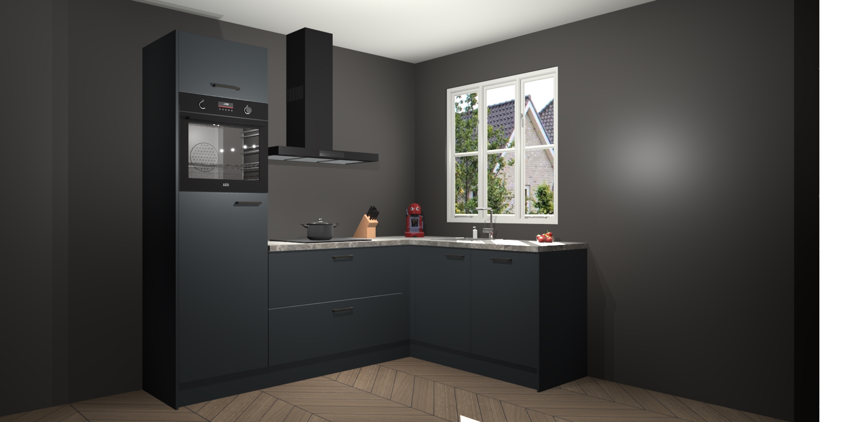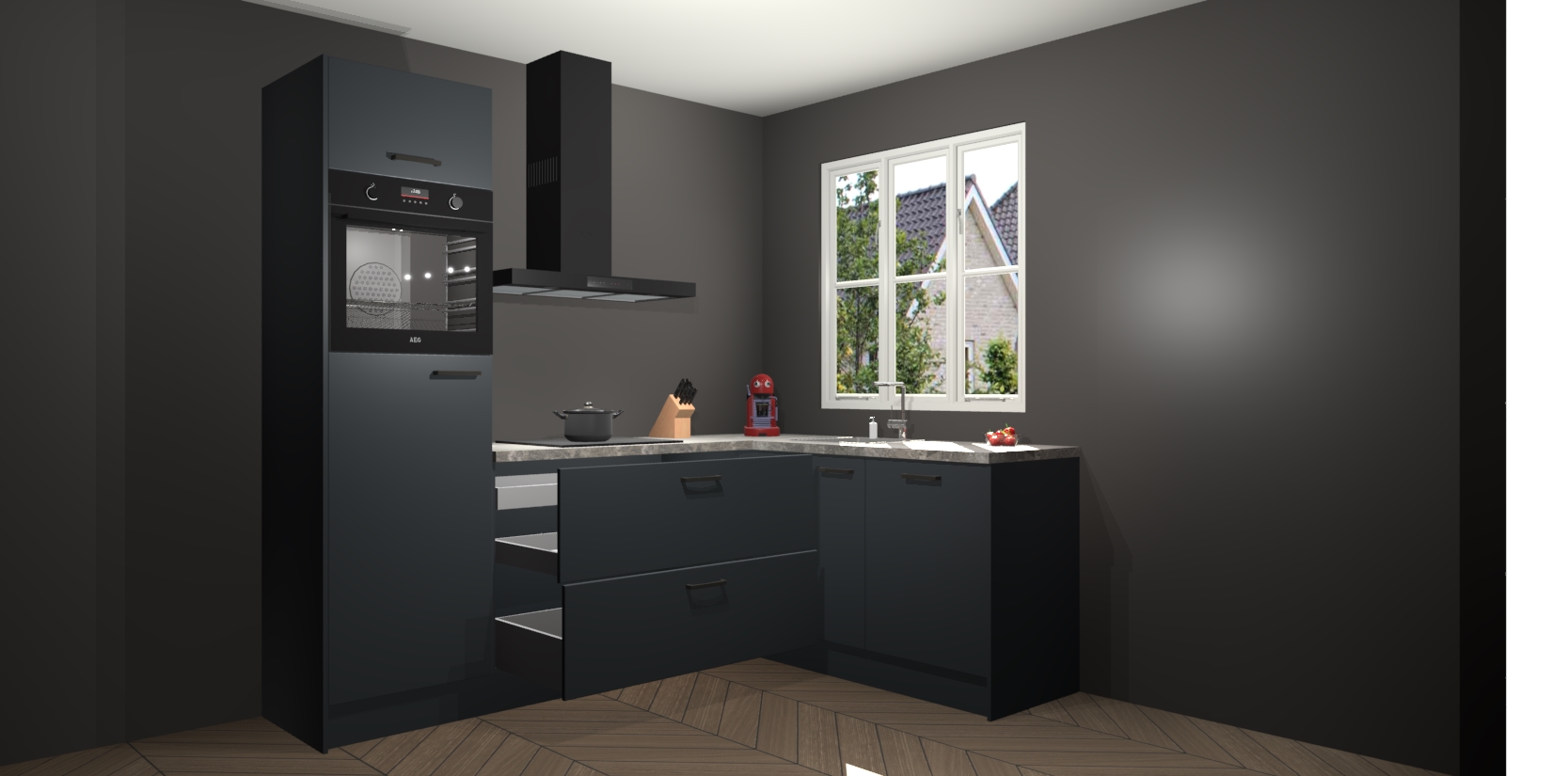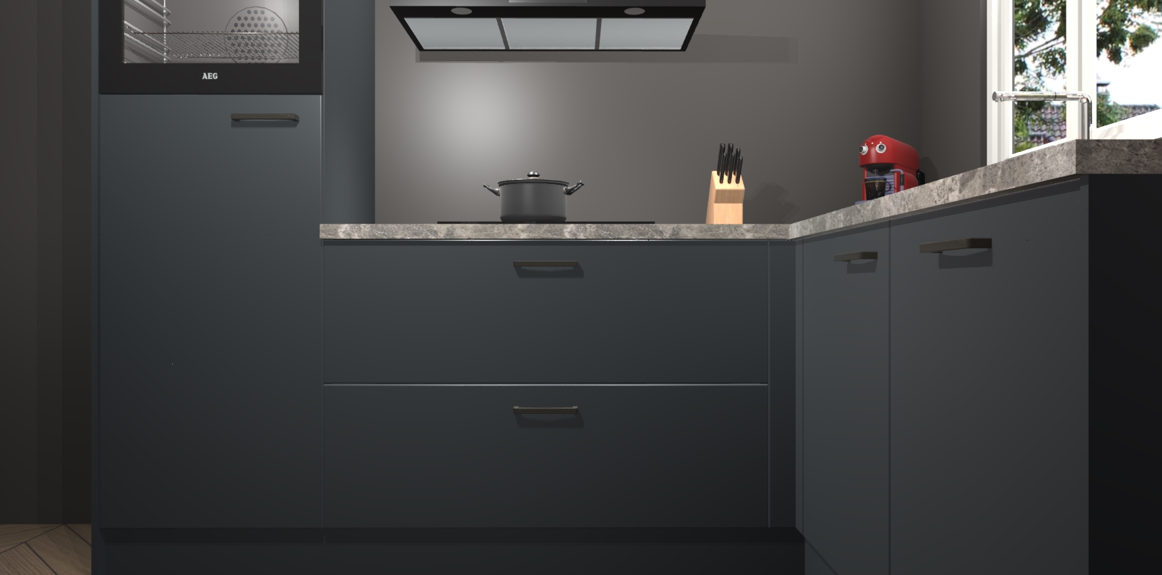 Dit model biedt u voldoende opbergruimte en vijf ingebouwde apparaten: een oven, inductiekookplaat, afzuigkap, vaatwasser en koelkast. Deze apparaten kunnen gemakkelijk worden geüpgrade naar AEG nadat u besteld heeft. De verschillende laden en kastjes bevatten softclose-deuren waardoor ze gezellig dichtvallen met een geruststellend helemaal geruisloos geluid. En dat is nog niet alles! We garanderen ook dat de prijs altijd laag blijft - dus haal nu uw Onyxgrijze keuken Victoria terwijl het kan.