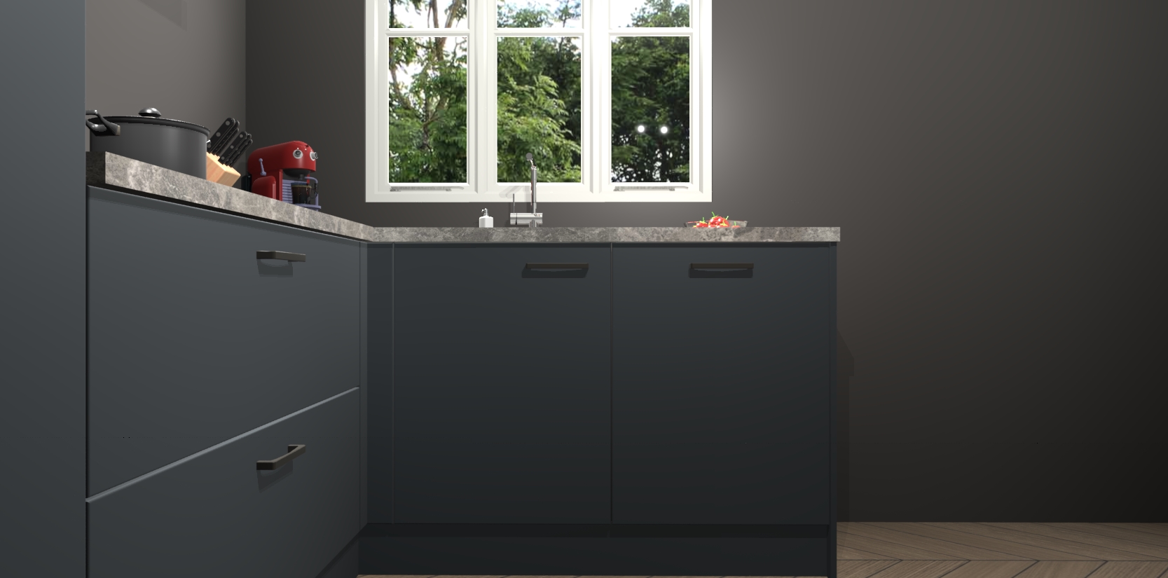 Als u op zoek bent naar een keuken die moderne stijl en elegantie combineert, is de Onyxgrijze keuken Victoria precies wat u zoekt! De perfecte combinatie van modern design en tijdloos kwaliteitsmateriaal zorgen voor een unieke keuken waar u met trots mee kunt pronken.