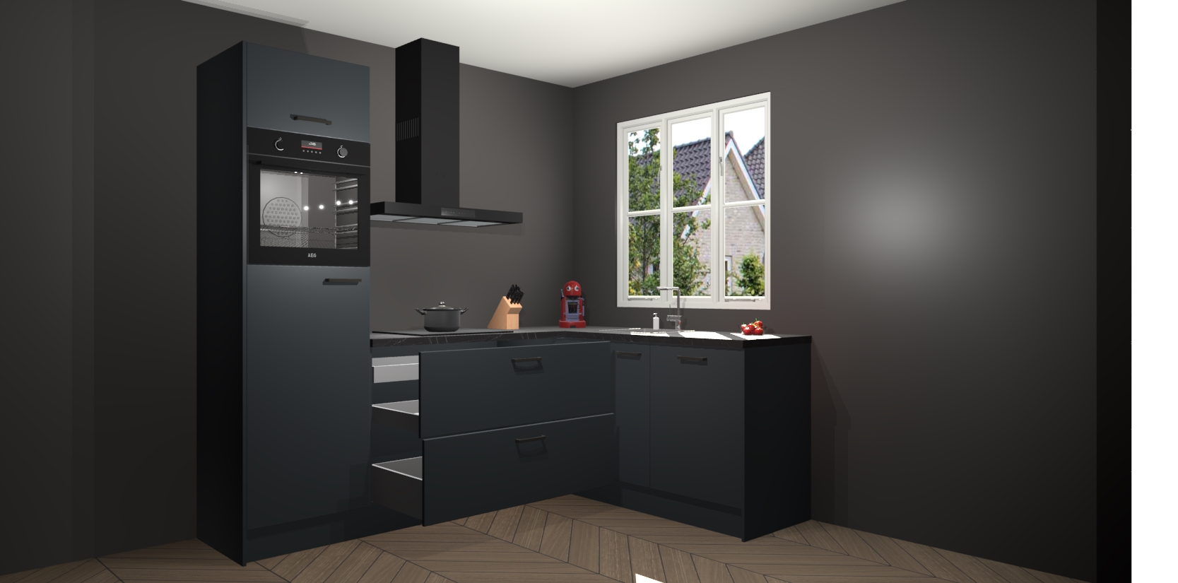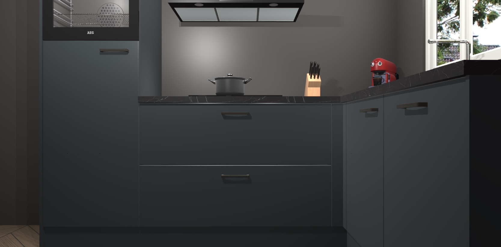 Dit model biedt u voldoende opbergruimte en vijf ingebouwde apparaten: een oven, inductiekookplaat, afzuigkap, vaatwasser en koelkast. Deze apparaten kunnen gemakkelijk worden geüpgrade naar AEG nadat u besteld heeft. De verschillende laden en kastjes bevatten softclose-deuren waardoor ze gezellig dichtvallen met een geruststellend helemaal geruisloos geluid. En dat is nog niet alles! We garanderen ook dat de prijs altijd laag blijft - dus haal nu uw Onyxgrijze keuken Victoria terwijl het kan.
