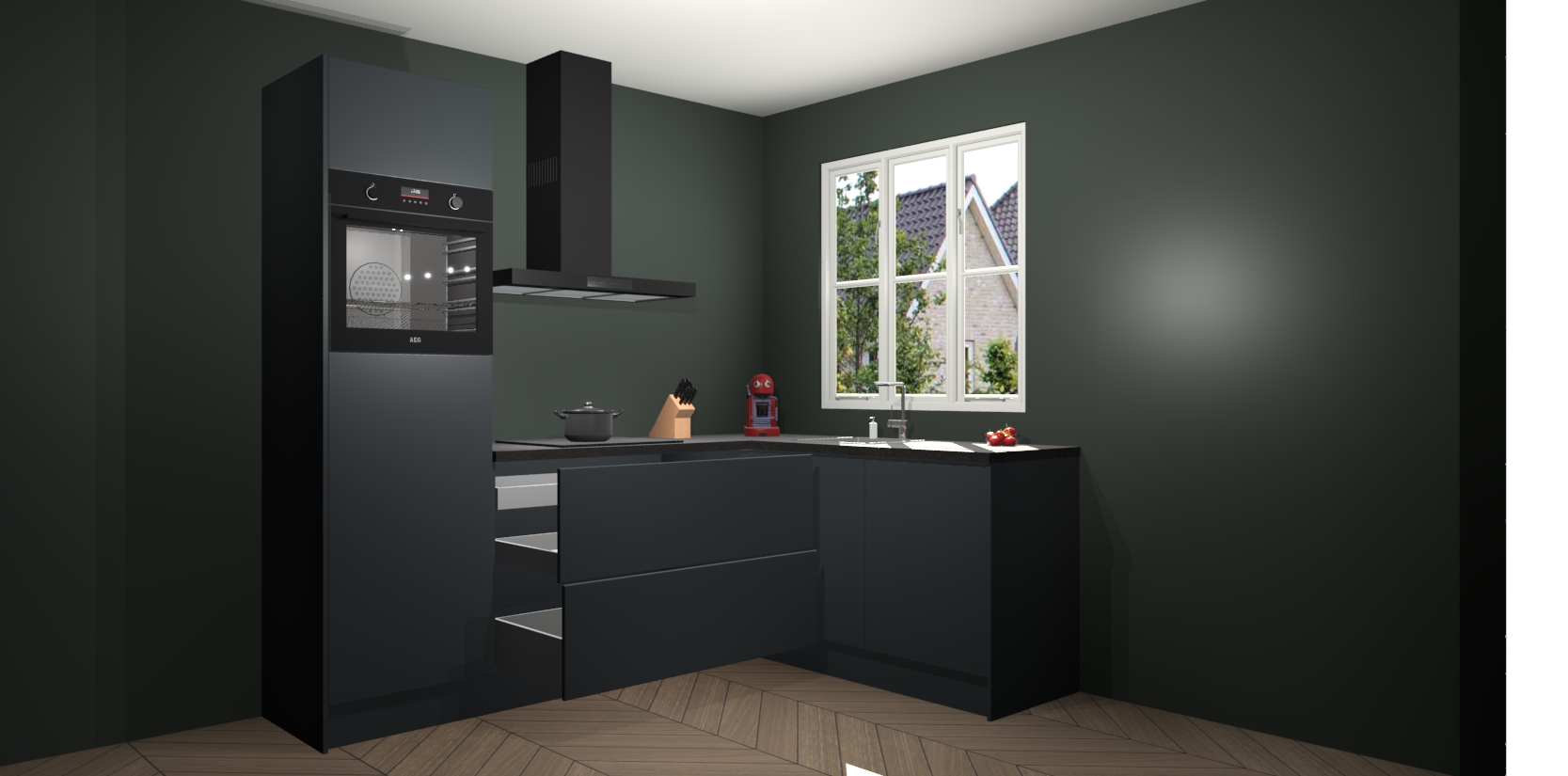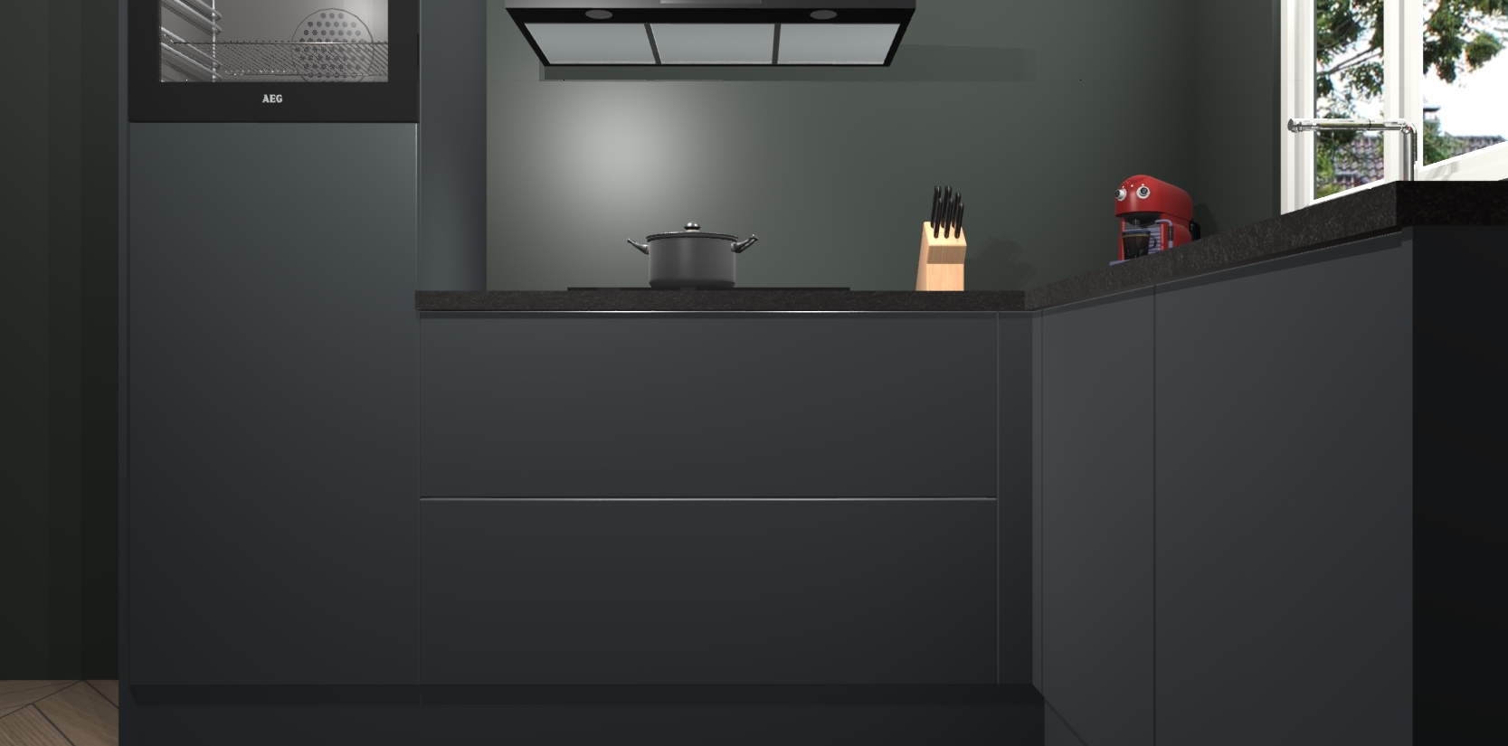 Dit model biedt u voldoende opbergruimte en vijf ingebouwde apparaten: een oven, inductiekookplaat, afzuigkap, vaatwasser en koelkast. Deze apparaten kunnen gemakkelijk worden geüpgrade naar AEG nadat u besteld heeft. De verschillende laden en kastjes bevatten softclose-deuren waardoor ze gezellig dichtvallen met een geruststellend helemaal geruisloos geluid. En dat is nog niet alles! We garanderen ook dat de prijs altijd laag blijft - dus haal nu uw Onyxgrijze keuken Victoria terwijl het kan.