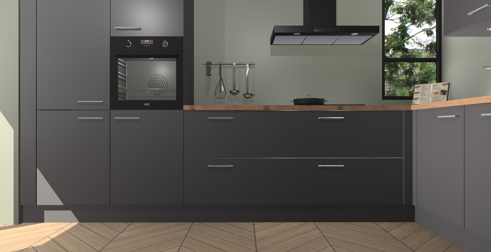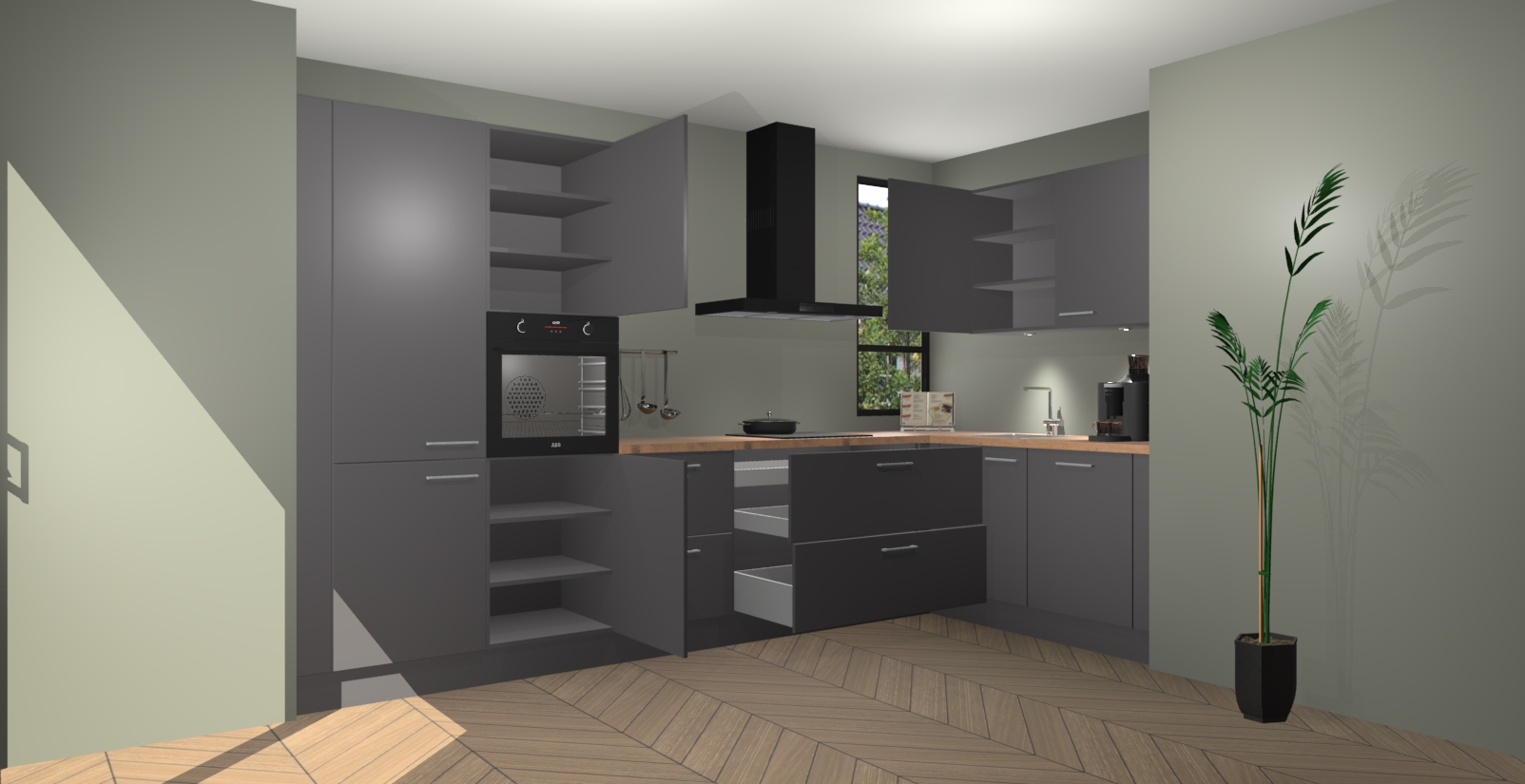 Welkom in uw nieuwe moderne keuken! Laat ons u voorstellen aan de Onyxgrijze keuken Vlaanderen . Deze prachtige hoekkeuken straalt exclusiviteit en luxe uit als geen ander. Het strakke design, de tijdloze kleuren en het model maken van deze keuken een moderne klassieker. En met voldoende opbergruimte heeft deze keuken echt voor ieder wat wils.