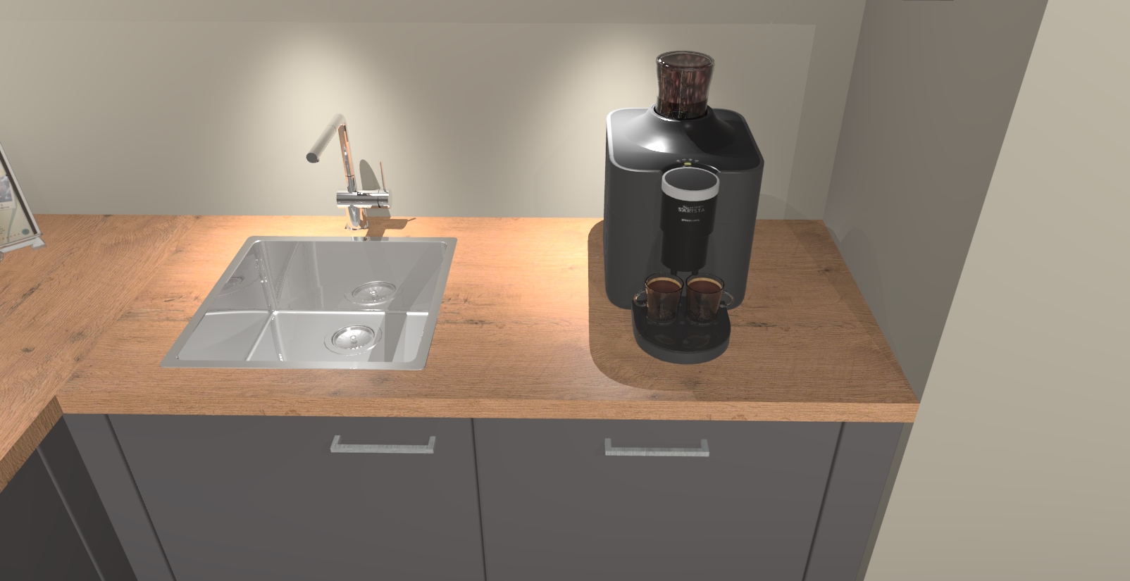 - De spoelbak is nog niet in gevreesd. Dit dient tijdens het werk gedaan te worden