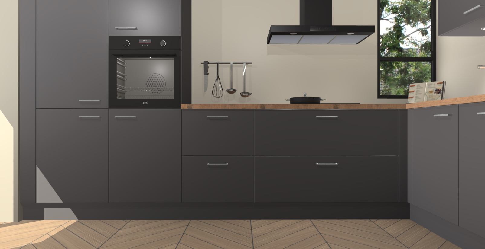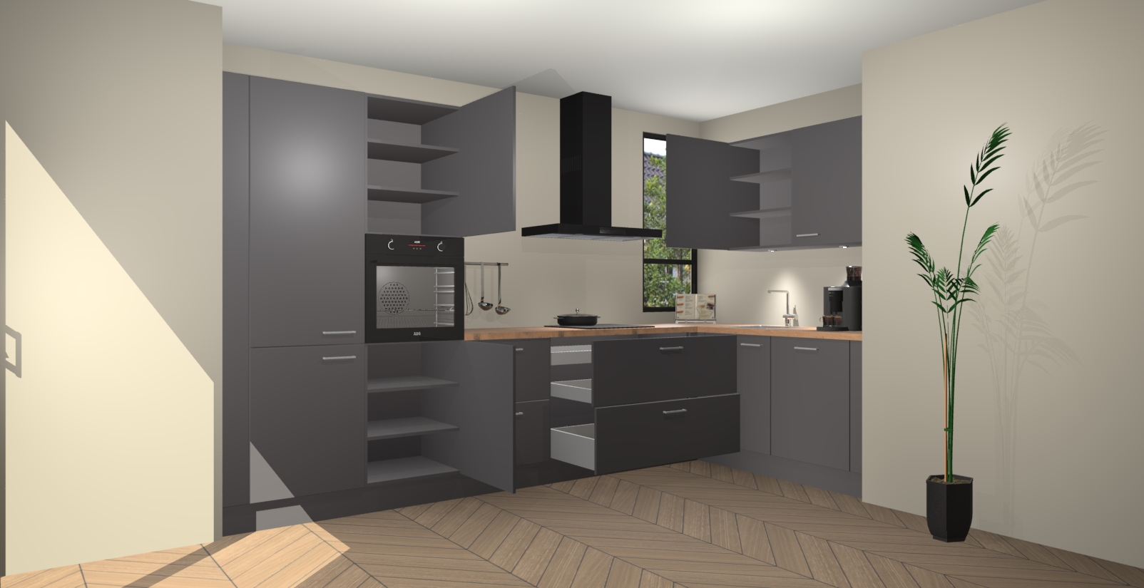 Welkom in uw nieuwe moderne keuken! Laat ons u voorstellen aan de Onyxgrijze keuken Vlaanderen . Deze prachtige hoekkeuken straalt exclusiviteit en luxe uit als geen ander. Het strakke design, de tijdloze kleuren en het model maken van deze keuken een moderne klassieker. En met voldoende opbergruimte heeft deze keuken echt voor ieder wat wils.