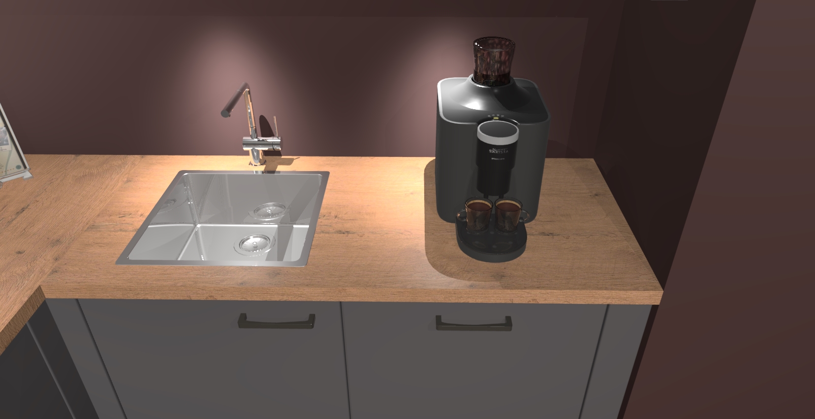 - De spoelbak is nog niet in gevreesd. Dit dient tijdens het werk gedaan te worden