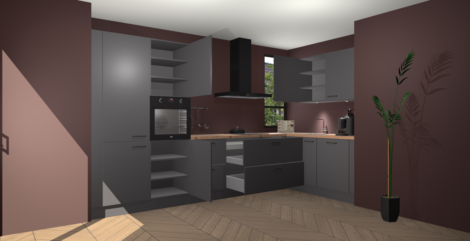 Welkom in uw nieuwe moderne keuken! Laat ons u voorstellen aan de Onyxgrijze keuken Vlaanderen . Deze prachtige hoekkeuken straalt exclusiviteit en luxe uit als geen ander. Het strakke design, de tijdloze kleuren en het model maken van deze keuken een moderne klassieker. En met voldoende opbergruimte heeft deze keuken echt voor ieder wat wils.