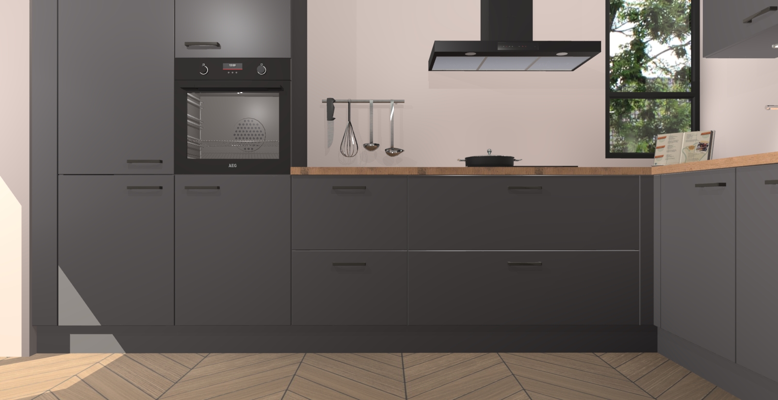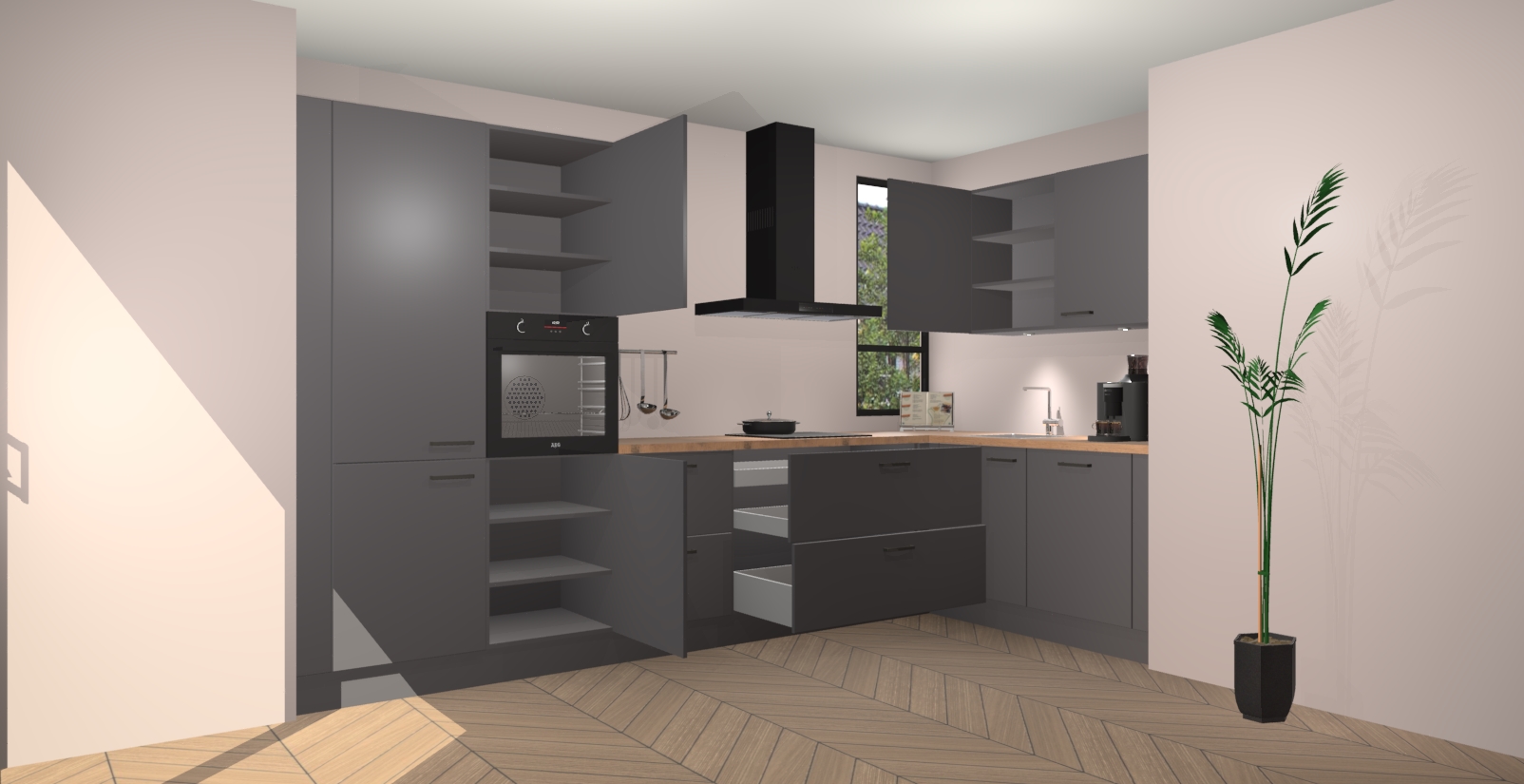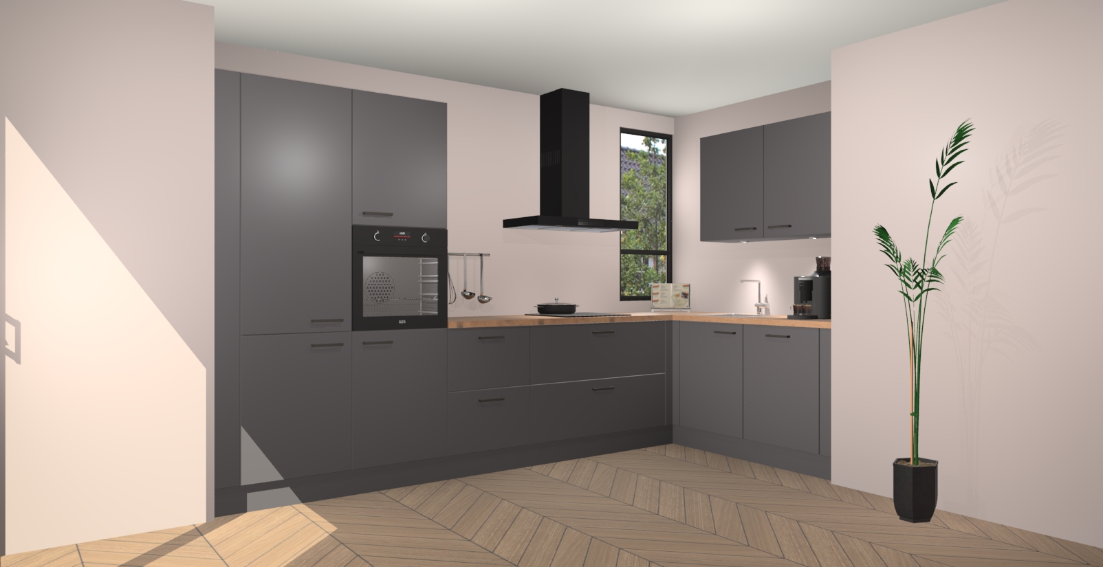 Welkom in uw nieuwe moderne keuken! Laat ons u voorstellen aan de Onyxgrijze keuken Vlaanderen . Deze prachtige hoekkeuken straalt exclusiviteit en luxe uit als geen ander. Het strakke design, de tijdloze kleuren en het model maken van deze keuken een moderne klassieker. En met voldoende opbergruimte heeft deze keuken echt voor ieder wat wils.