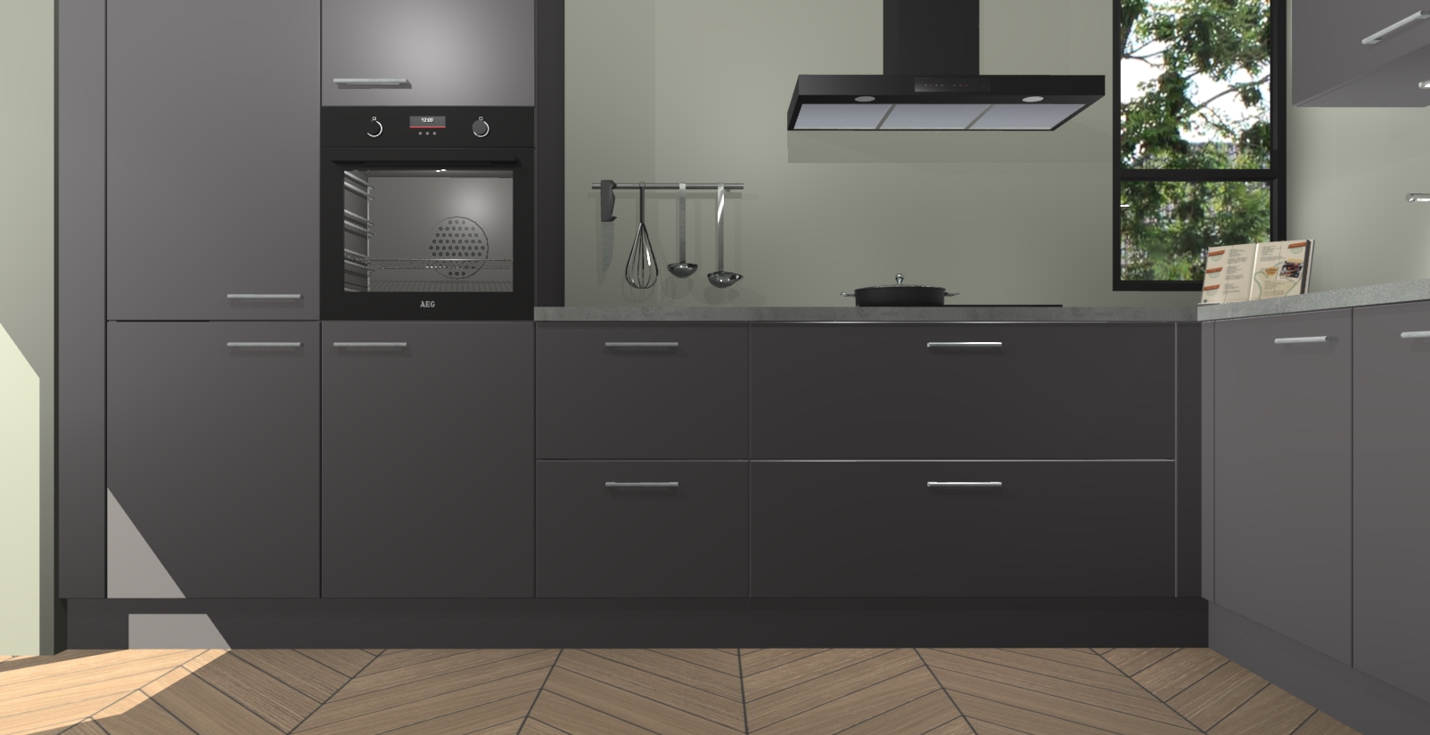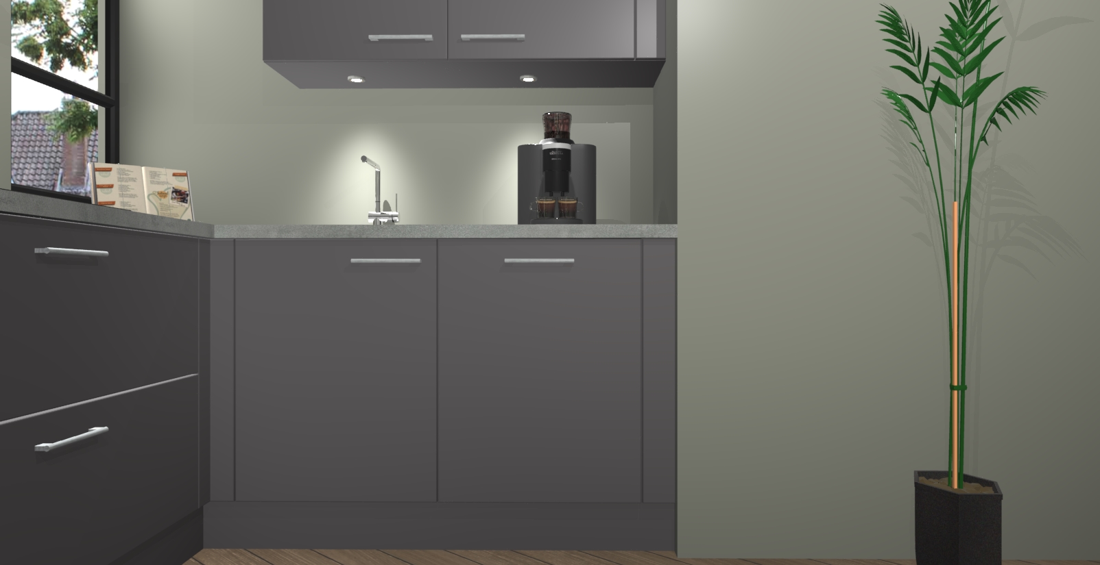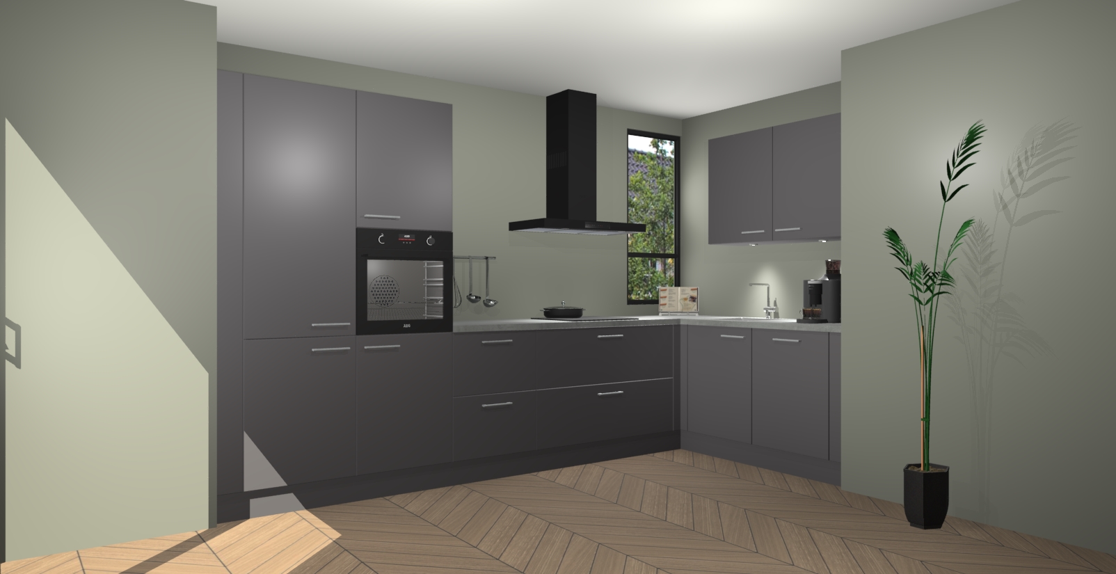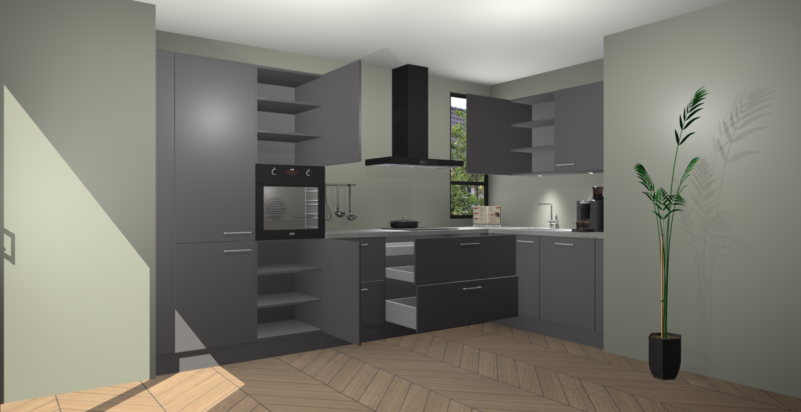 Welkom in uw nieuwe moderne keuken! Laat ons u voorstellen aan de Onyxgrijze keuken Vlaanderen . Deze prachtige hoekkeuken straalt exclusiviteit en luxe uit als geen ander. Het strakke design, de tijdloze kleuren en het model maken van deze keuken een moderne klassieker. En met voldoende opbergruimte heeft deze keuken echt voor ieder wat wils.