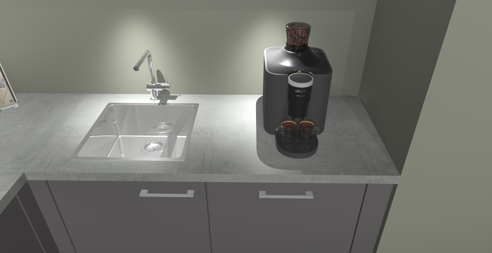 • De spoelbak is nog niet in gevreesd. Dit dient tijdens het werk gedaan te worden