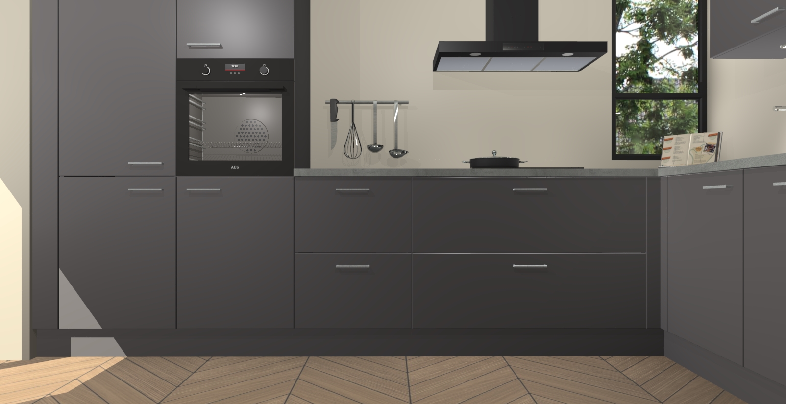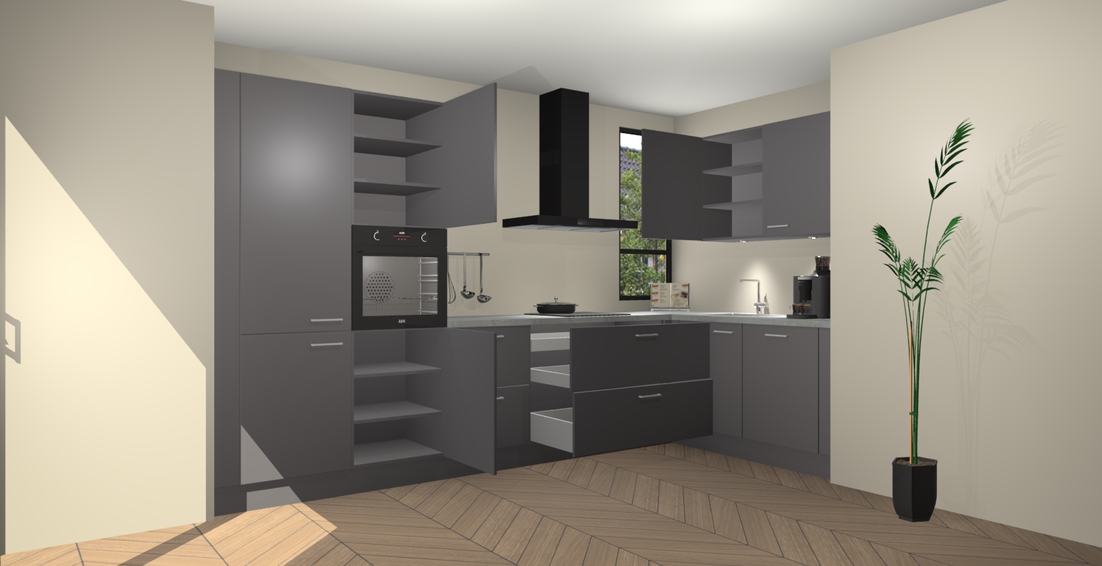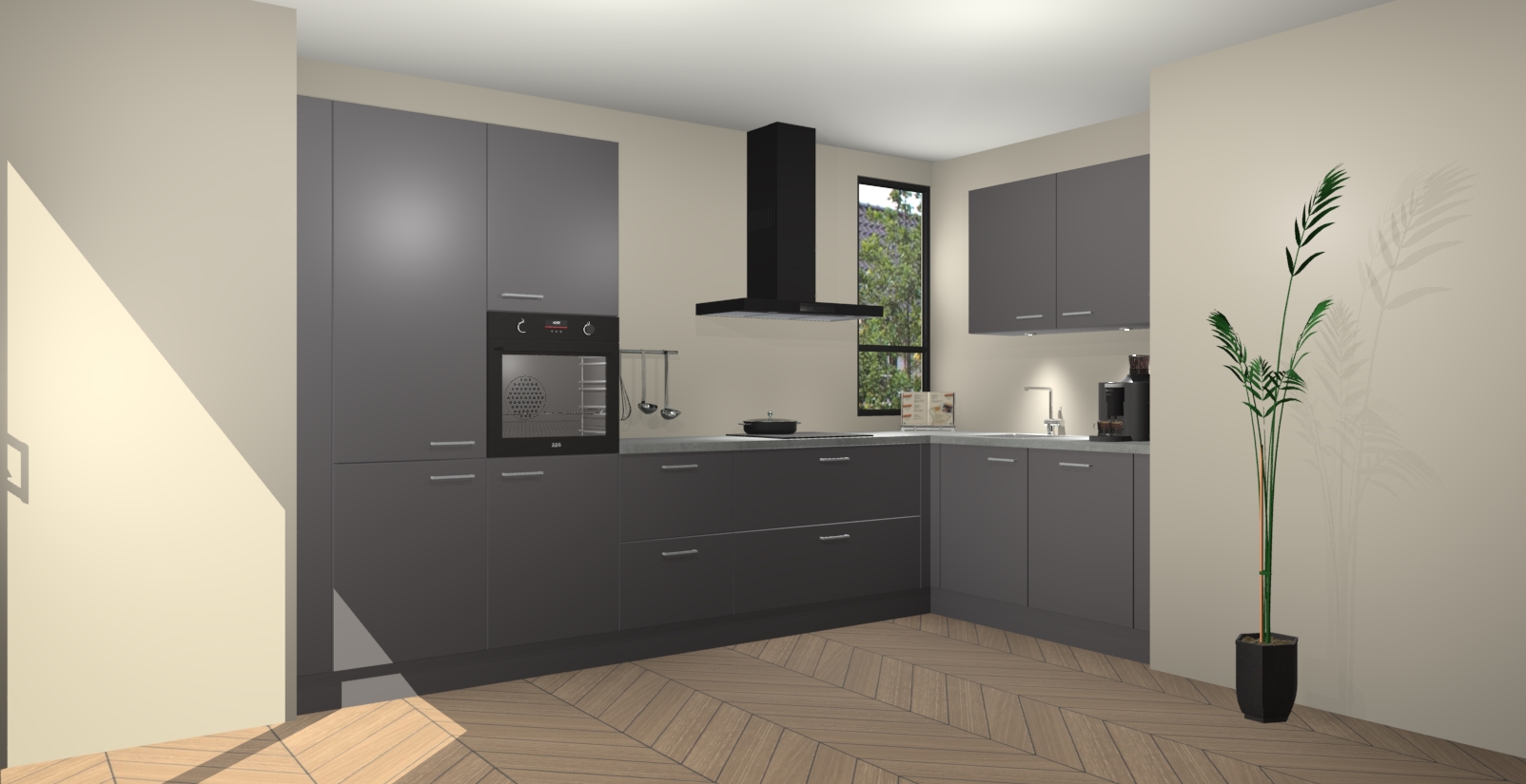 Welkom in uw nieuwe moderne keuken! Laat ons u voorstellen aan de Onyxgrijze keuken Vlaanderen . Deze prachtige hoekkeuken straalt exclusiviteit en luxe uit als geen ander. Het strakke design, de tijdloze kleuren en het model maken van deze keuken een moderne klassieker. En met voldoende opbergruimte heeft deze keuken echt voor ieder wat wils.