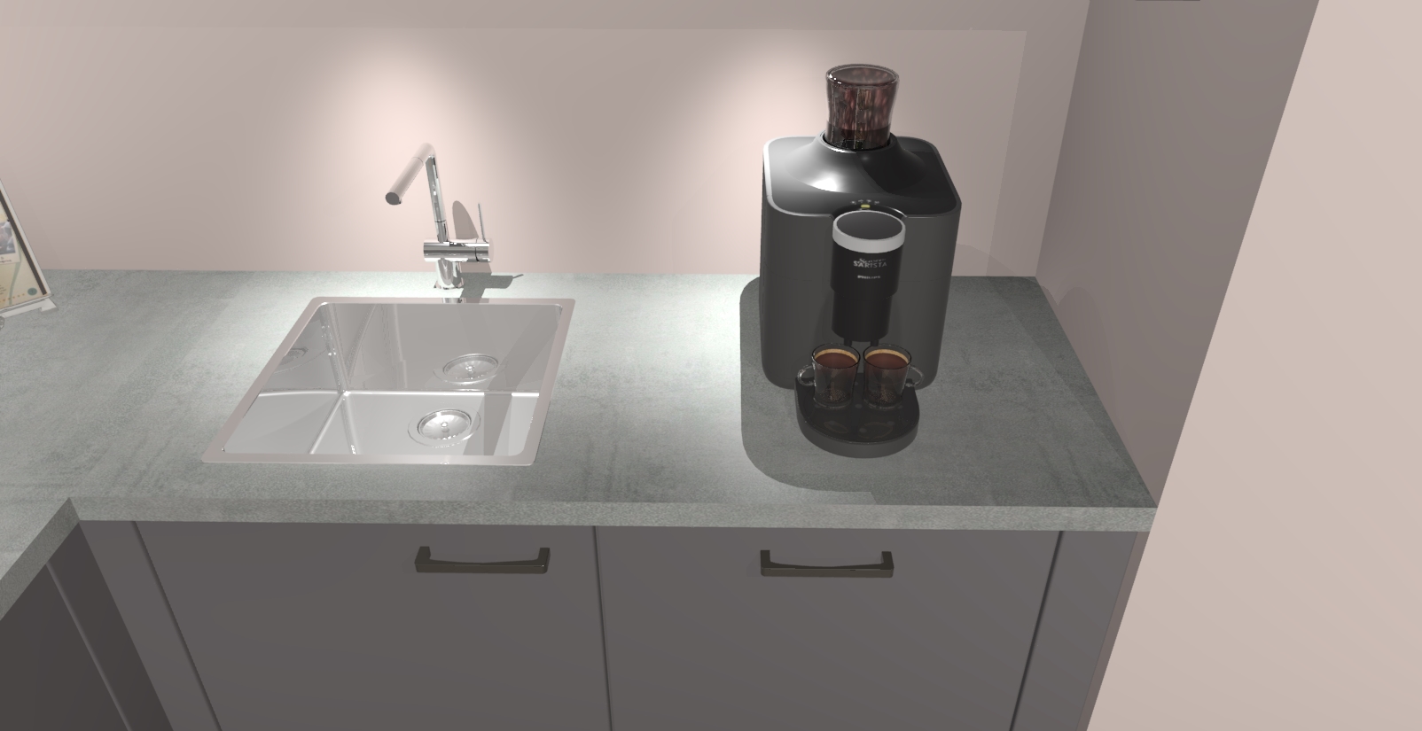 - De spoelbak is nog niet in gevreesd. Dit dient tijdens het werk gedaan te worden