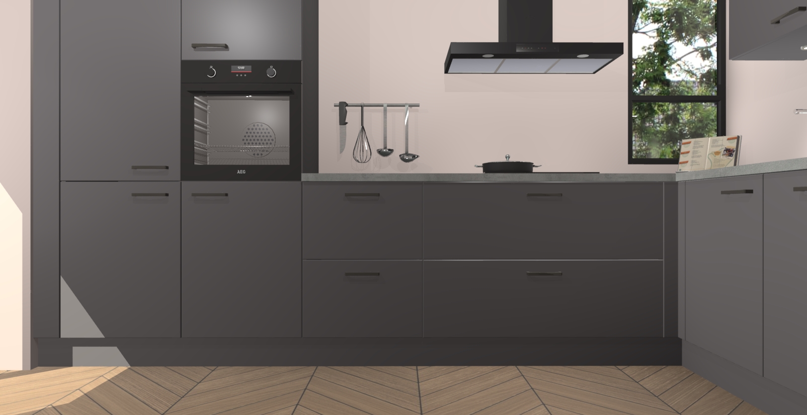 Welkom in uw nieuwe moderne keuken! Laat ons u voorstellen aan de Onyxgrijze keuken Vlaanderen . Deze prachtige hoekkeuken straalt exclusiviteit en luxe uit als geen ander. Het strakke design, de tijdloze kleuren en het model maken van deze keuken een moderne klassieker. En met voldoende opbergruimte heeft deze keuken echt voor ieder wat wils.