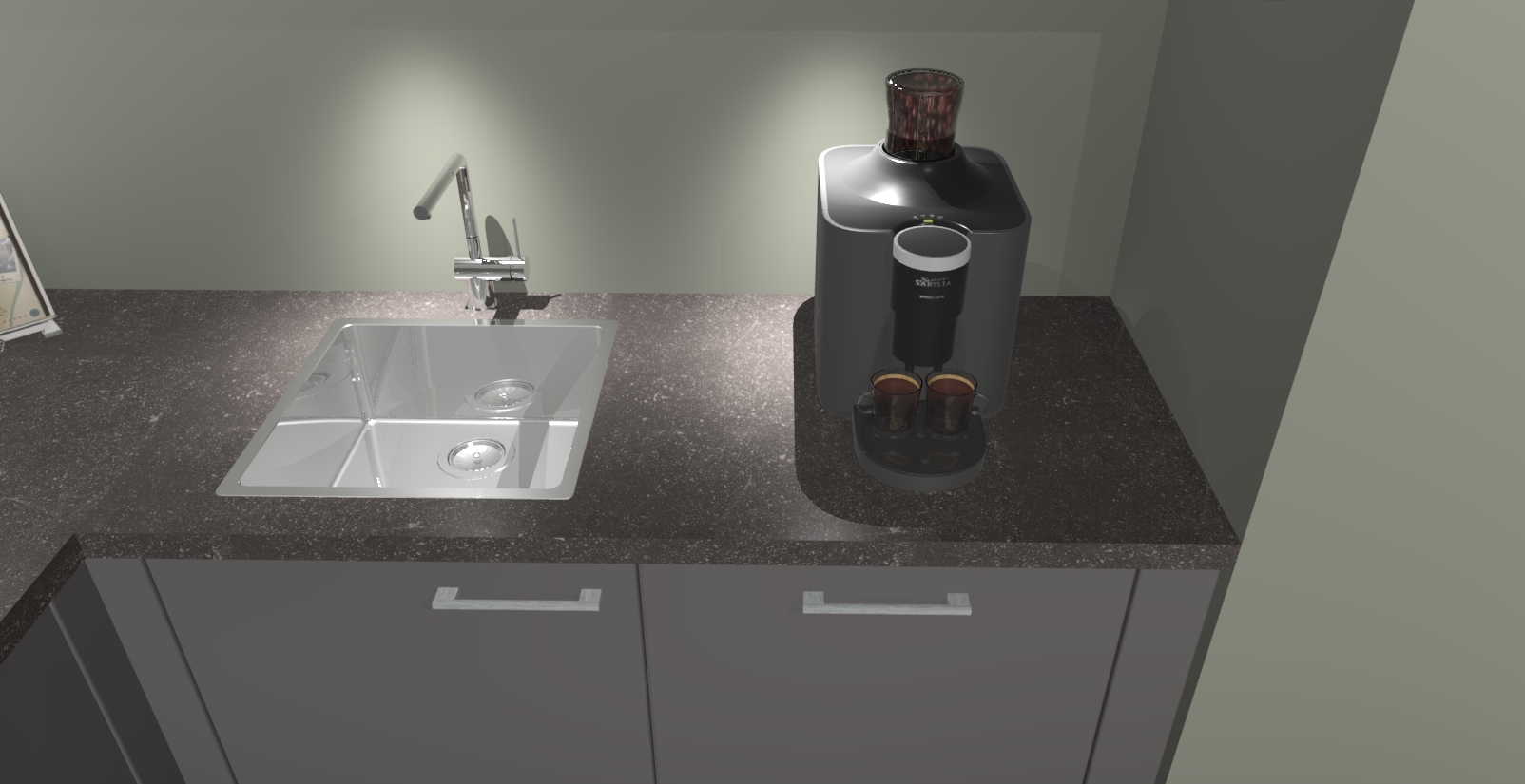 - De spoelbak is nog niet in gevreesd. Dit dient tijdens het werk gedaan te worden