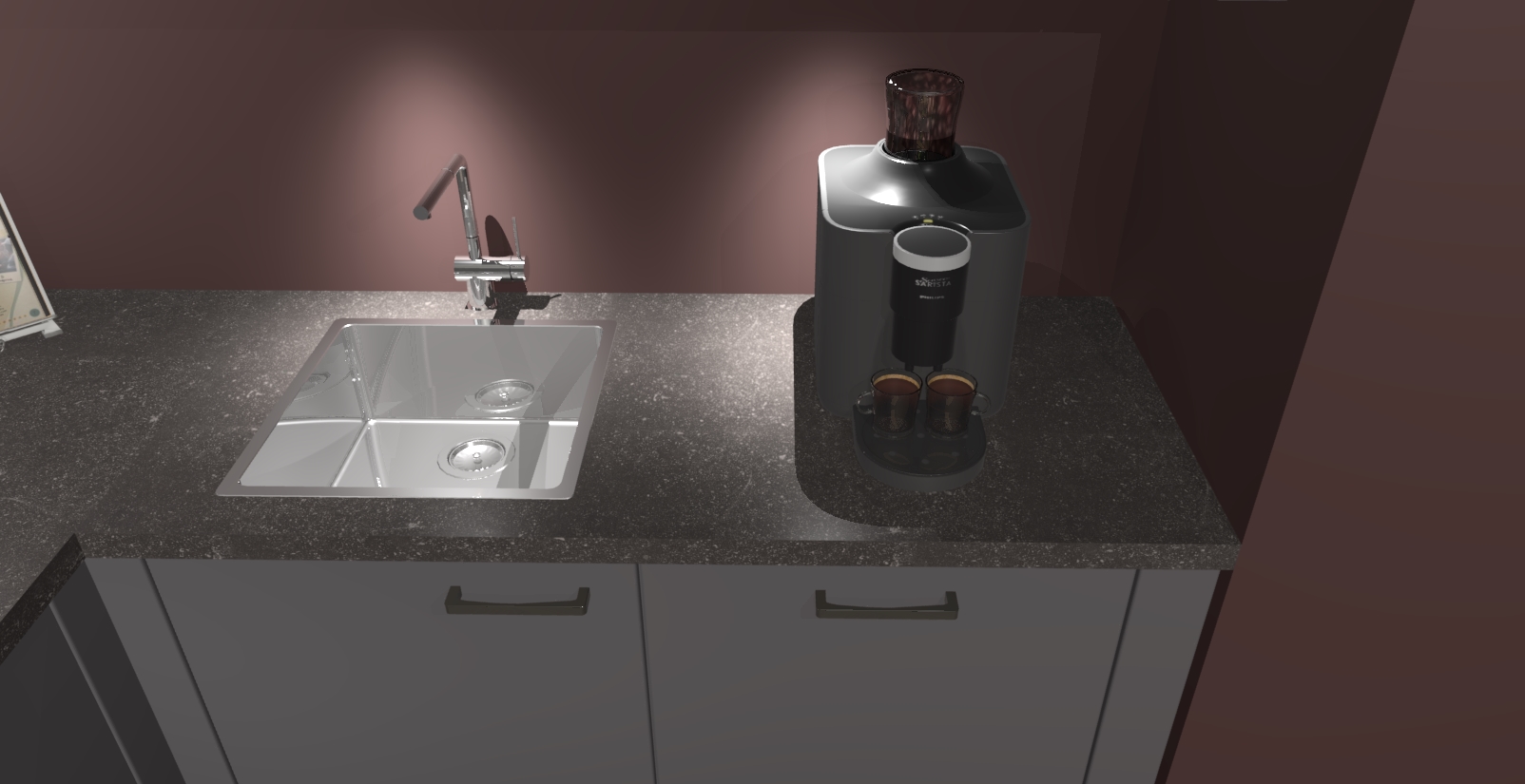 - De spoelbak is nog niet in gevreesd. Dit dient tijdens het werk gedaan te worden