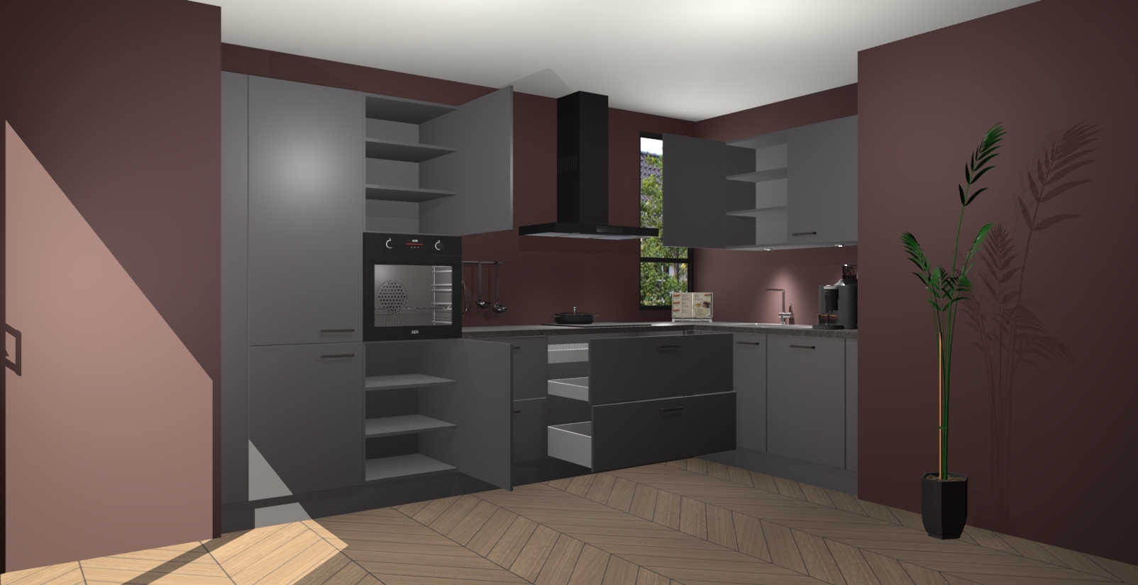 Welkom in uw nieuwe moderne keuken! Laat ons u voorstellen aan de Onyxgrijze keuken Vlaanderen . Deze prachtige hoekkeuken straalt exclusiviteit en luxe uit als geen ander. Het strakke design, de tijdloze kleuren en het model maken van deze keuken een moderne klassieker. En met voldoende opbergruimte heeft deze keuken echt voor ieder wat wils.