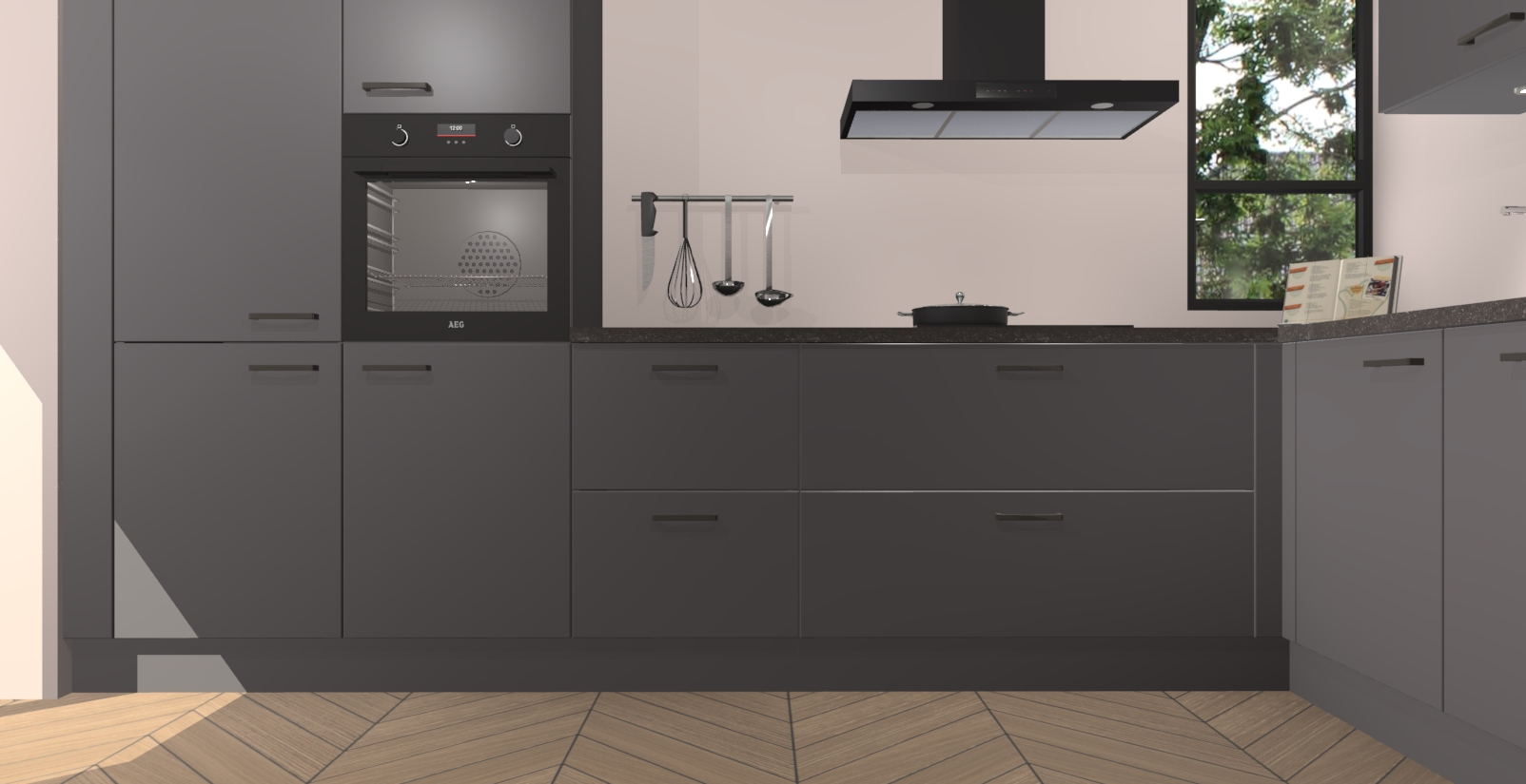 Welkom in uw nieuwe moderne keuken! Laat ons u voorstellen aan de Onyxgrijze keuken Vlaanderen . Deze prachtige hoekkeuken straalt exclusiviteit en luxe uit als geen ander. Het strakke design, de tijdloze kleuren en het model maken van deze keuken een moderne klassieker. En met voldoende opbergruimte heeft deze keuken echt voor ieder wat wils.