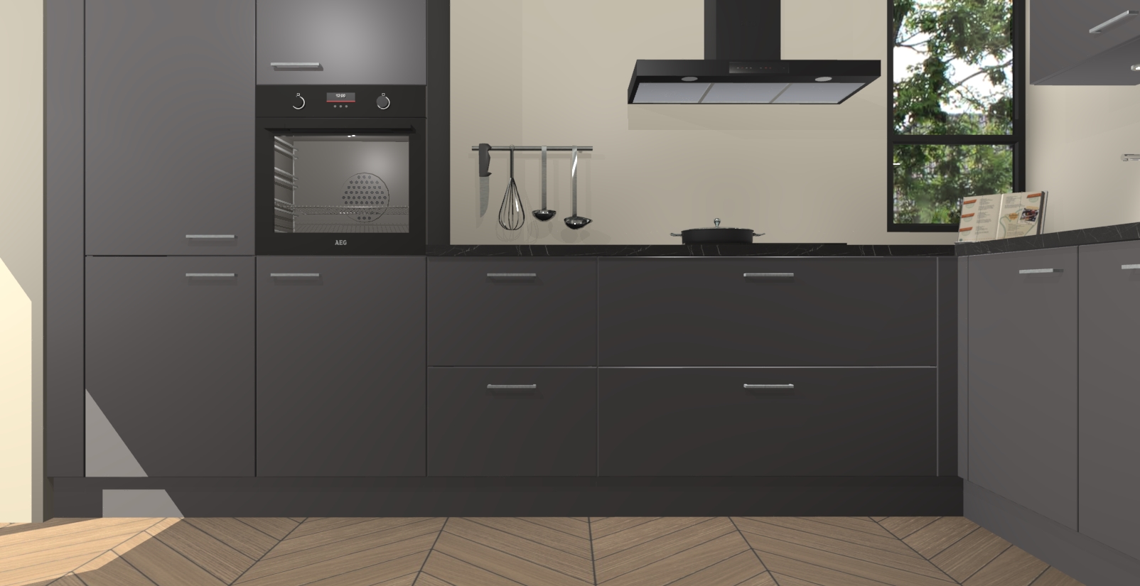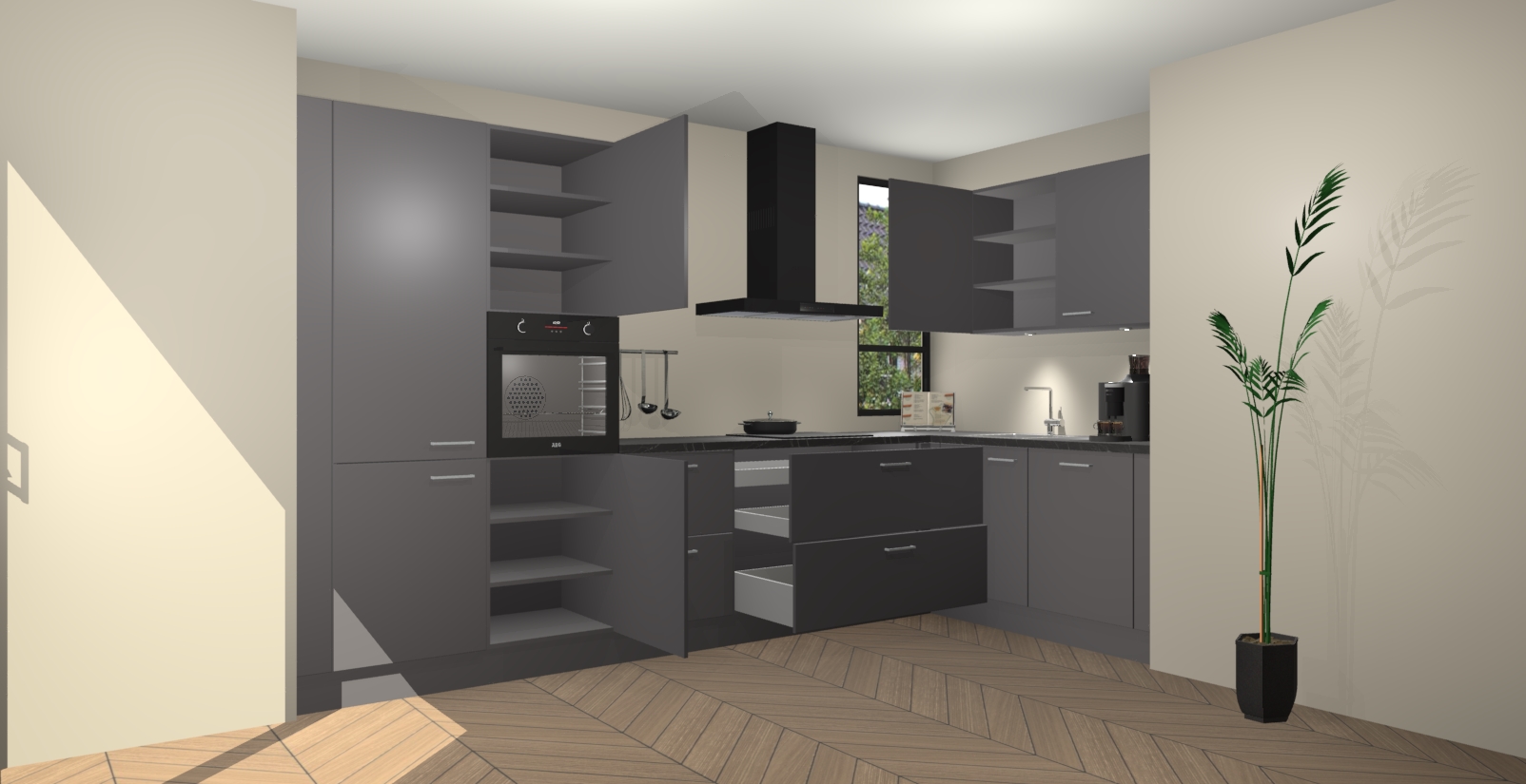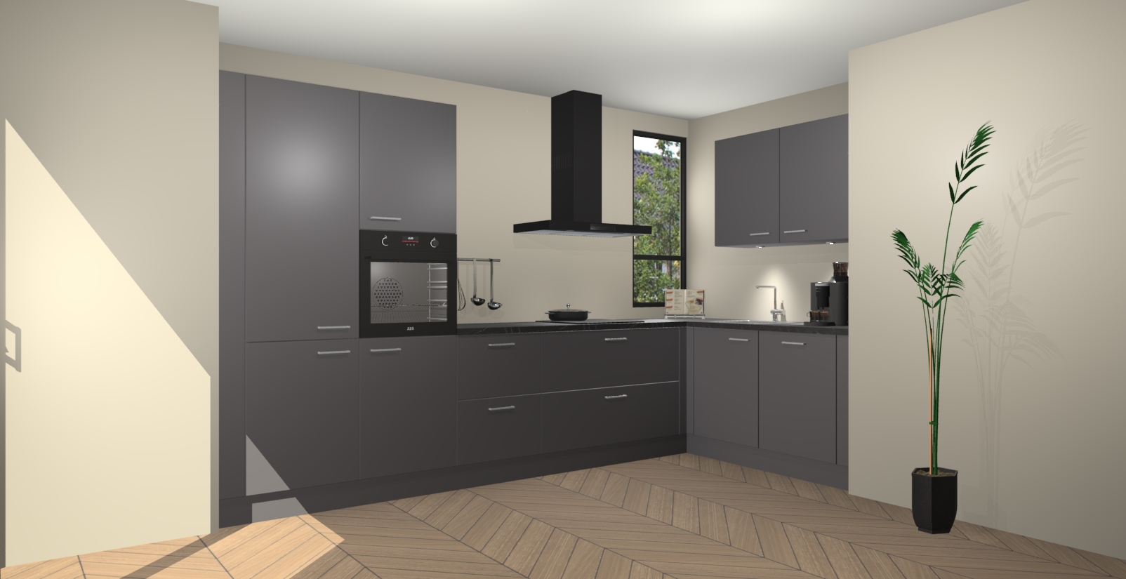 Welkom in uw nieuwe moderne keuken! Laat ons u voorstellen aan de Onyxgrijze keuken Vlaanderen . Deze prachtige hoekkeuken straalt exclusiviteit en luxe uit als geen ander. Het strakke design, de tijdloze kleuren en het model maken van deze keuken een moderne klassieker. En met voldoende opbergruimte heeft deze keuken echt voor ieder wat wils.