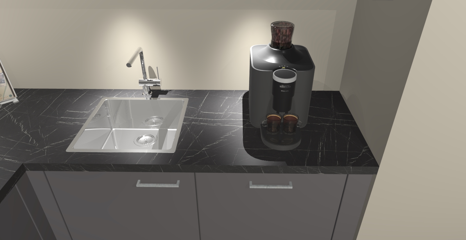 - De spoelbak is nog niet in gevreesd. Dit dient tijdens het werk gedaan te worden