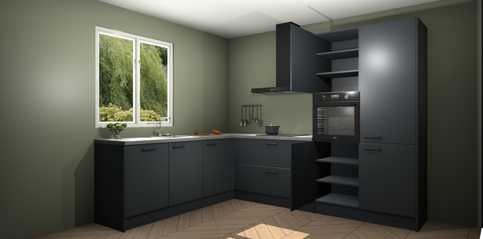 Laat u overtuigen door deze prachtige Onyxgrijze keuken Willemstad! Verlies uzelf in dit moderne en tijdloze ontwerp, dat perfect is aangepast aan uw behoeftes. Er is veel opbergruimte die u kunt gebruiken om al uw kookbenodigdheden optimaal te organiseren.