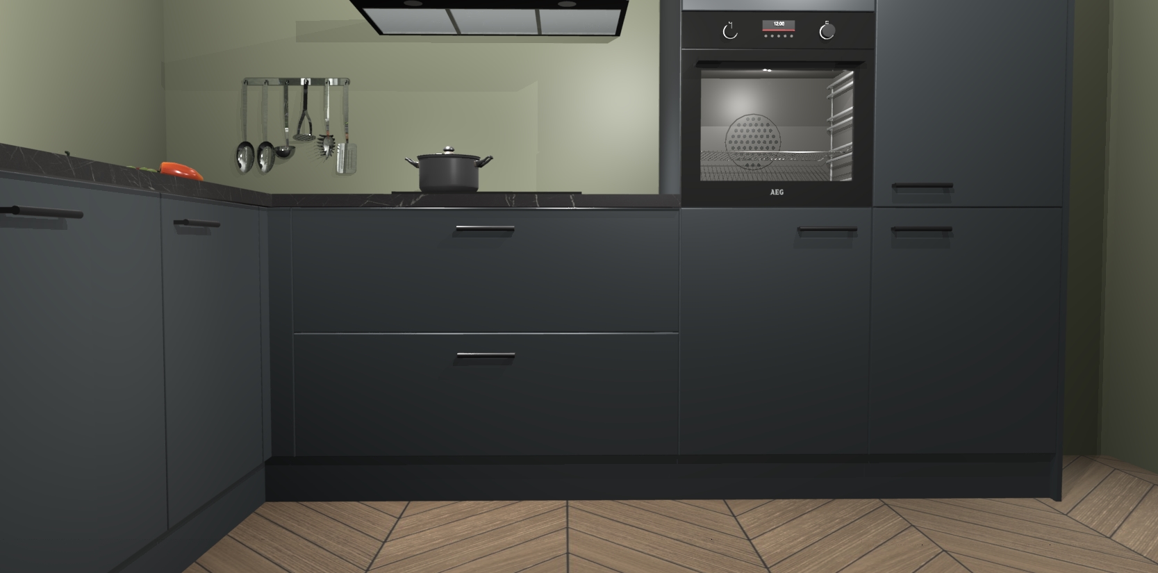 Veel meer dan dat: met de aankoop van deze keuken krijgt u maar liefst 5 ingebouwde huishoudtoestellen, zoals een oven, inductiekookplaat, afzuigkap, vaatwasser en koelkast. Ze zijn makkelijk te upgraden naar AEG of bijvoorbeeld van oven naar een combimagnetron na bestelling. En alsof dat nog niet genoeg is hebben de kastjes allemaal softclose deuren voor extra comfort en luxe!