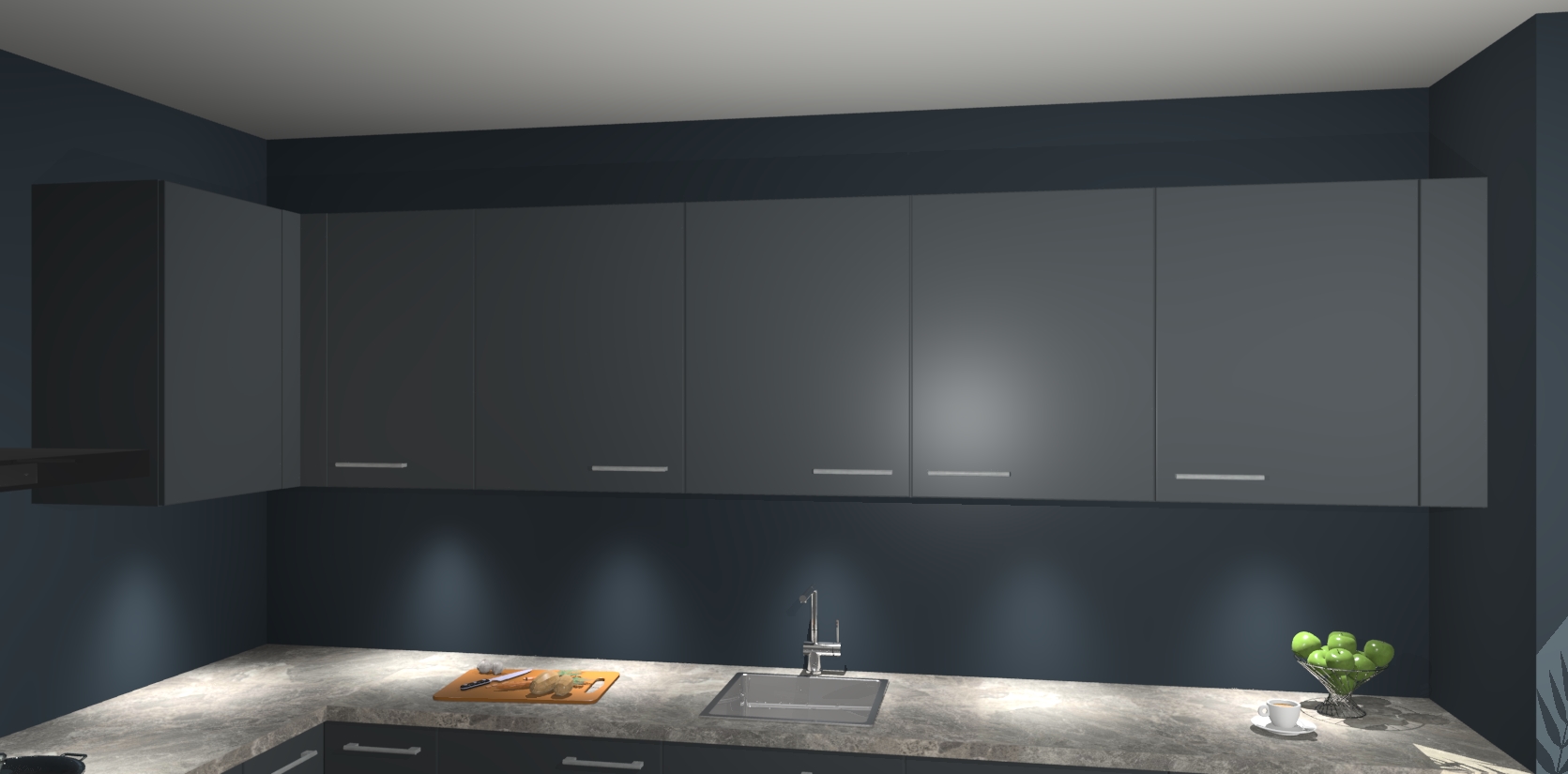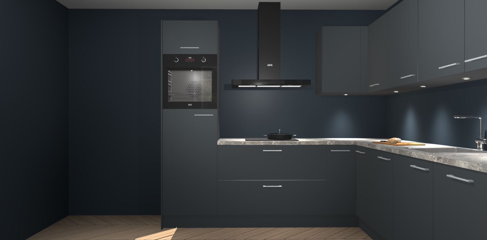 De Onyxygrijze keuken Debar is uitgerust met vijf inbouwapparaten die elke kooktaak handig en efficiënt maken. Een oven, inductiekookplaat, afzuigkap, vaatwasser en koelkast zijn standaard, maar kunnen na bestelling eenvoudig worden geupgrade naar AEG. Profiteer vervolgens van de softclose deuren voor snelle toegang en geruisloze toegang.