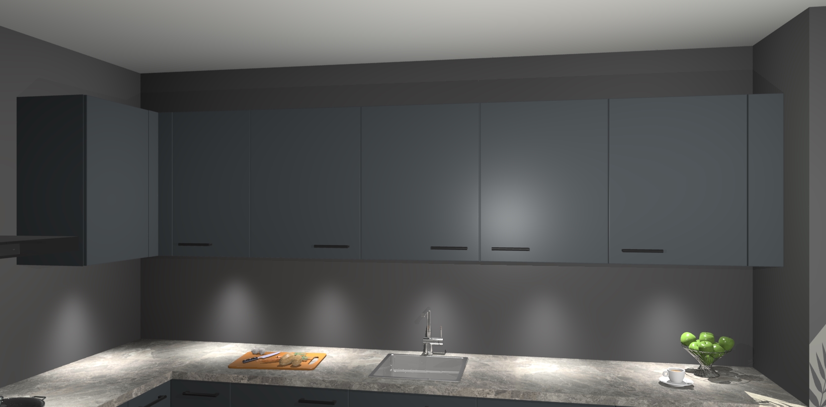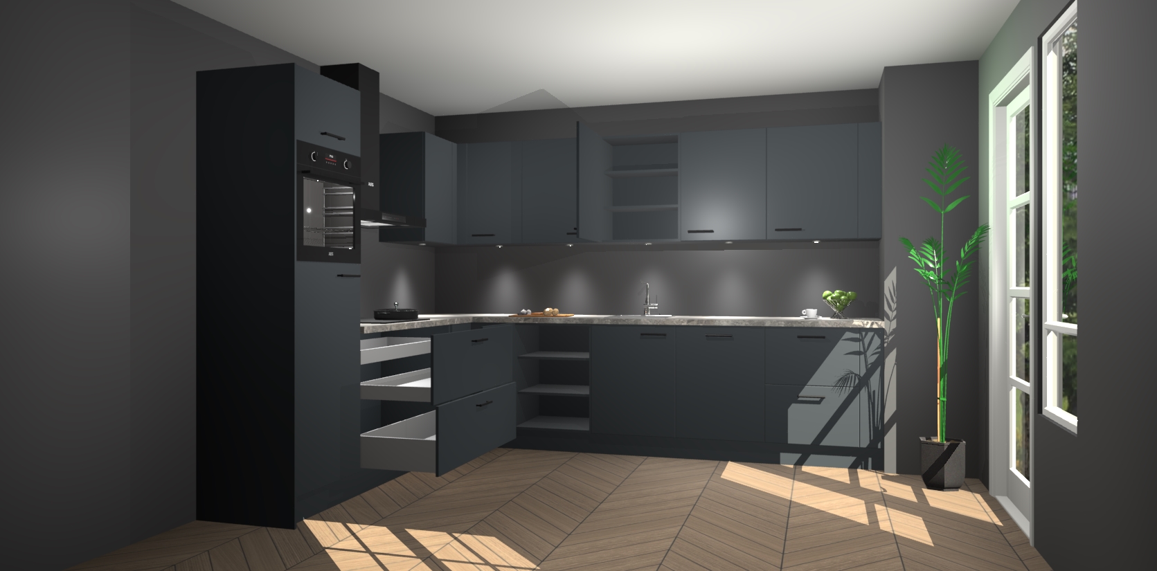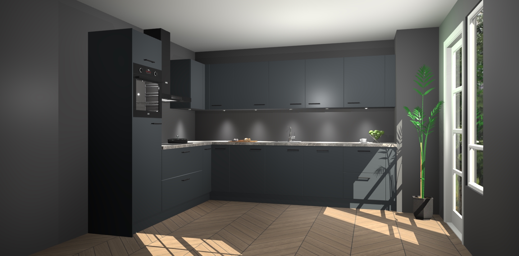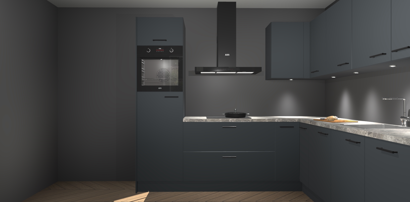 De Onyxygrijze keuken Debar is uitgerust met vijf inbouwapparaten die elke kooktaak handig en efficiënt maken. Een oven, inductiekookplaat, afzuigkap, vaatwasser en koelkast zijn standaard, maar kunnen na bestelling eenvoudig worden geupgrade naar AEG. Profiteer vervolgens van de softclose deuren voor snelle toegang en geruisloze toegang.