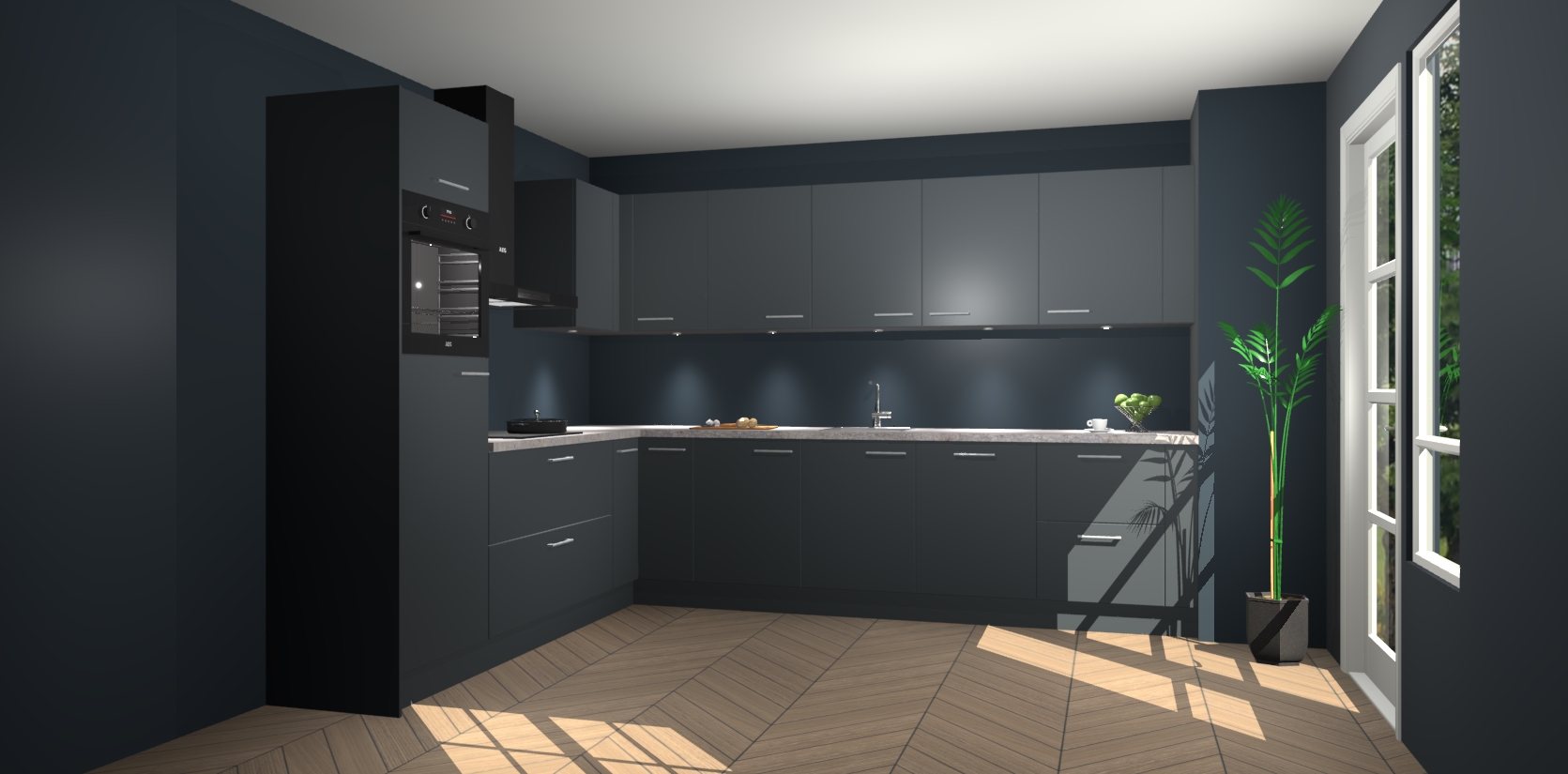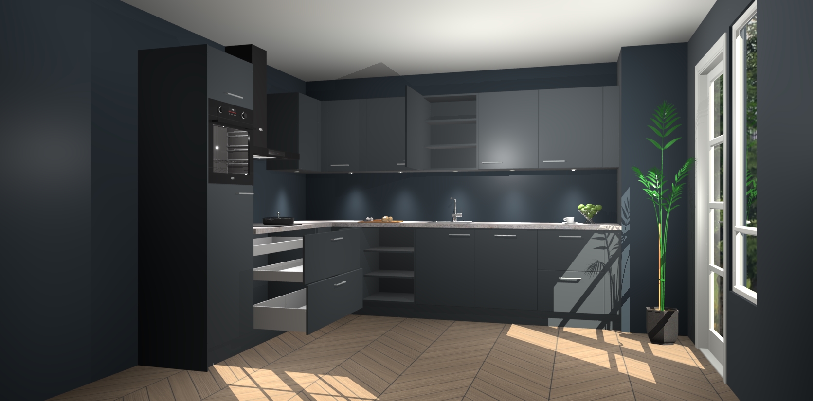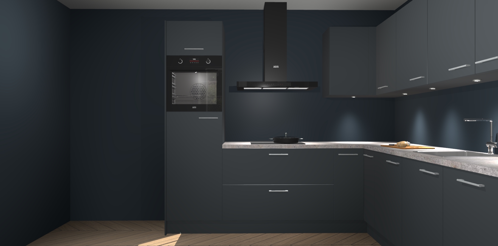 De Onyxygrijze keuken Debar is uitgerust met vijf inbouwapparaten die elke kooktaak handig en efficiënt maken. Een oven, inductiekookplaat, afzuigkap, vaatwasser en koelkast zijn standaard, maar kunnen na bestelling eenvoudig worden geupgrade naar AEG. Profiteer vervolgens van de softclose deuren voor snelle toegang en geruisloze toegang.