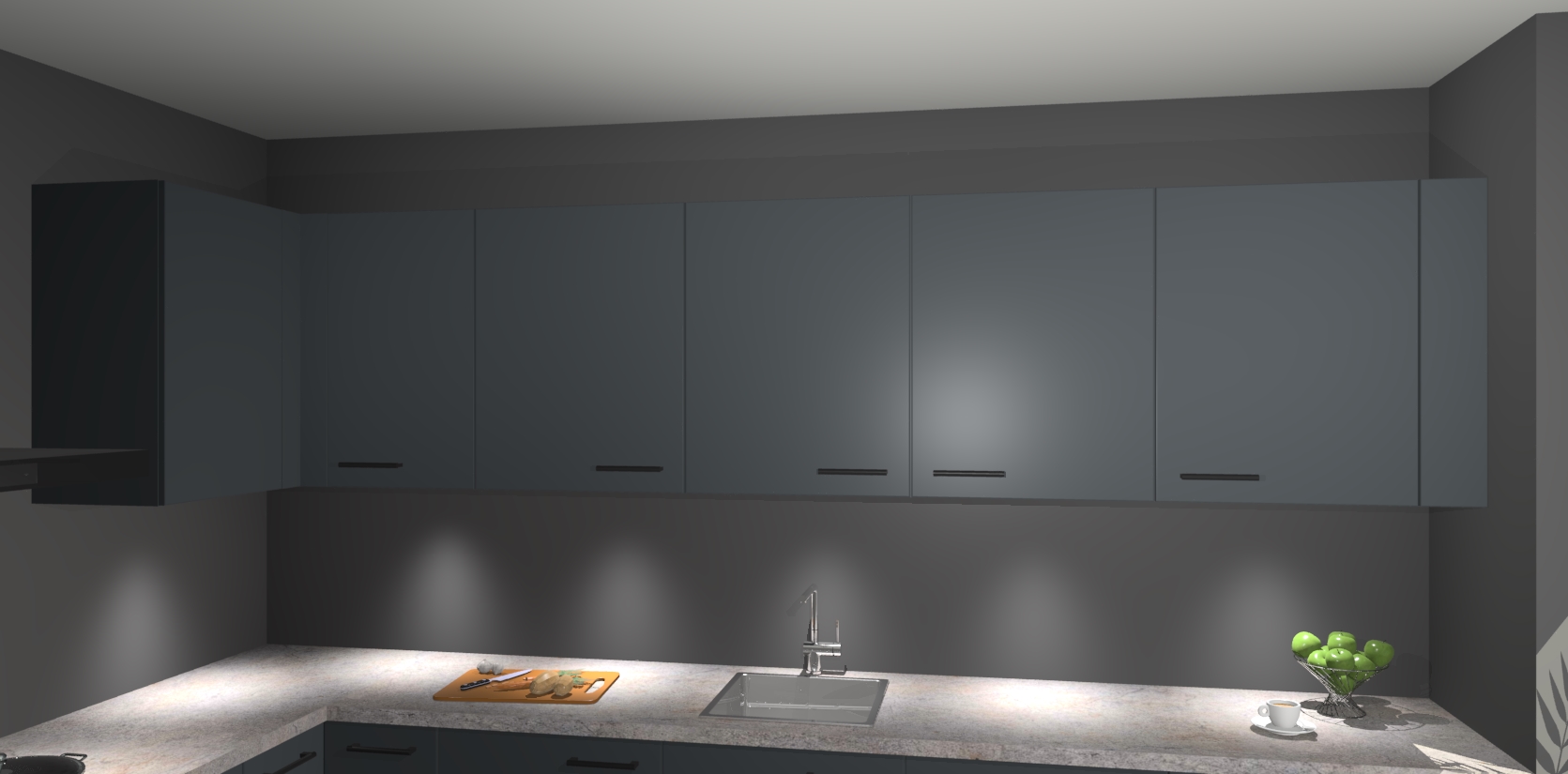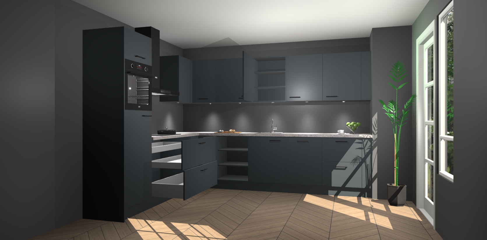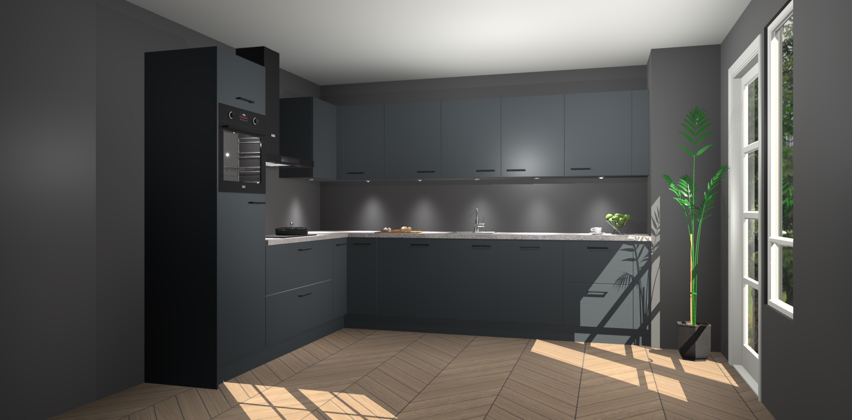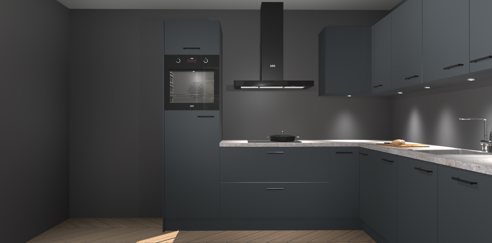 De Onyxygrijze keuken Debar is uitgerust met vijf inbouwapparaten die elke kooktaak handig en efficiënt maken. Een oven, inductiekookplaat, afzuigkap, vaatwasser en koelkast zijn standaard, maar kunnen na bestelling eenvoudig worden geupgrade naar AEG. Profiteer vervolgens van de softclose deuren voor snelle toegang en geruisloze toegang.