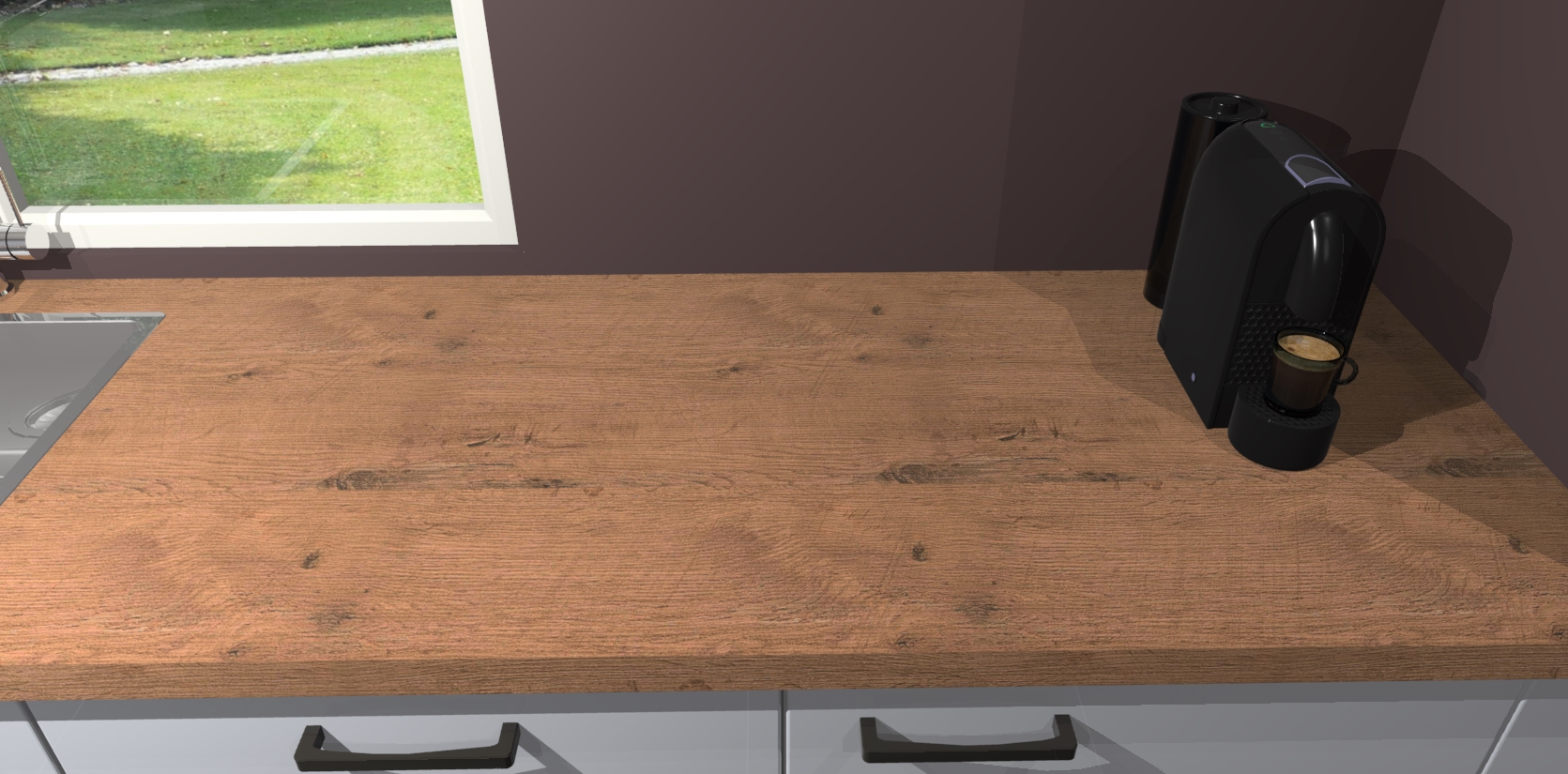- Bij een hoekwerkblad zijn de hoeken in gevreesd en op maat gemaakt
