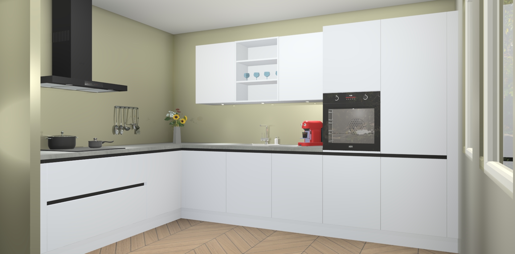 Inclusief plinten, stelpoten en werkblad