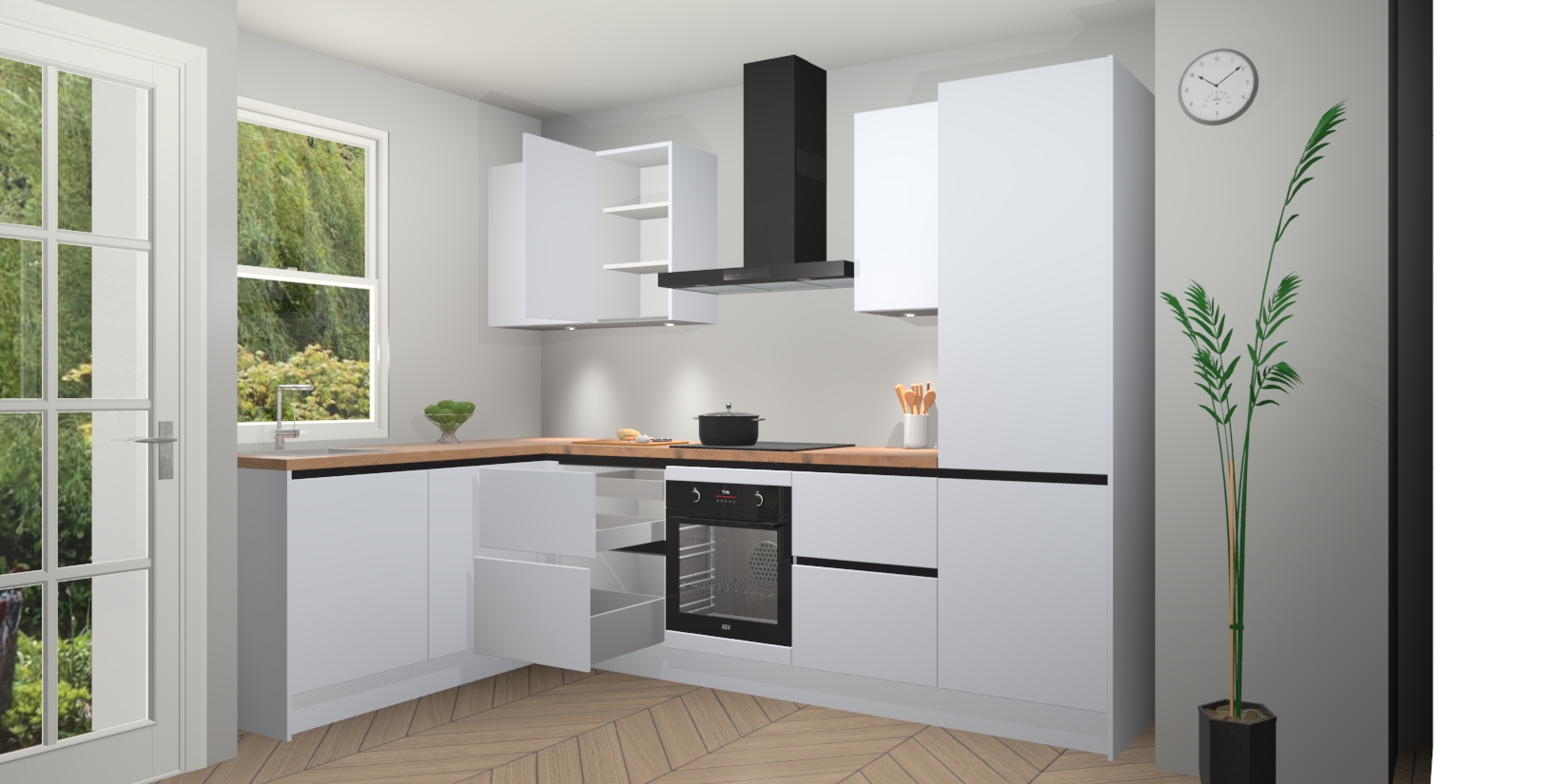 Inclusief plinten, stelpoten en werkblad