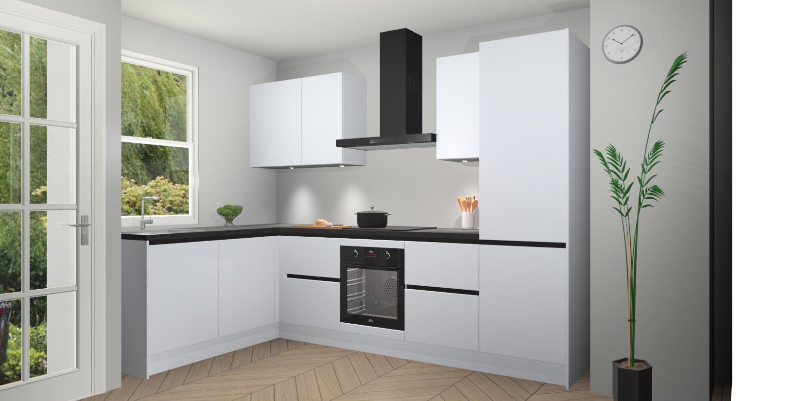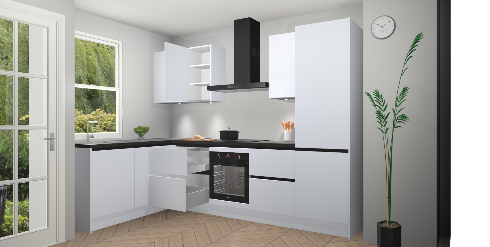 U hoeft zich ook geen zorgen te maken over een gebrek aan opbergruimte, want deze keuken heeft voldoende opbergmogelijkheden zowel boven als onder het aanrecht. Om het leven nog makkelijker te maken, wordt deze moderne hoekkeuken geleverd met 5 ingebouwde apparaten, waaronder een oven, inductiekookplaat, afzuigkap, vaatwasser en koelkast, zodat u in een mum van tijd klaar bent voor actie!