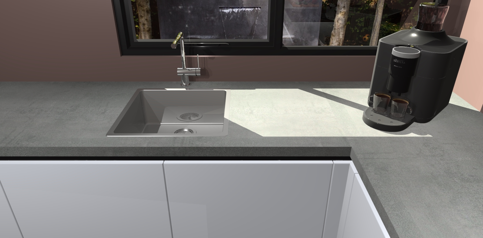 - Bij een hoekwerkblad zijn de hoeken in gevreesd en op maat gemaakt