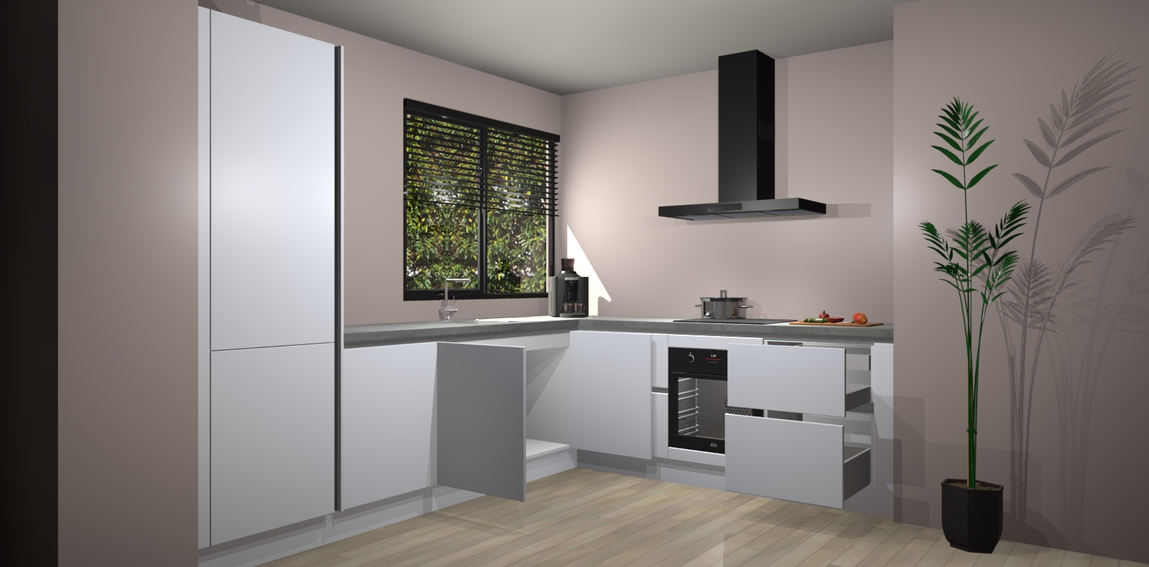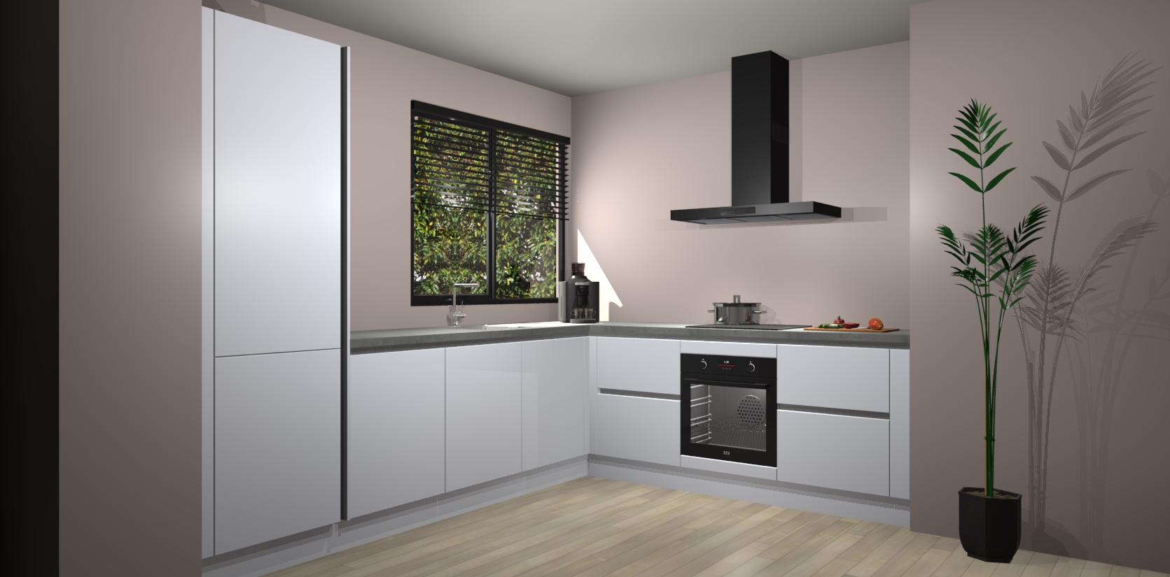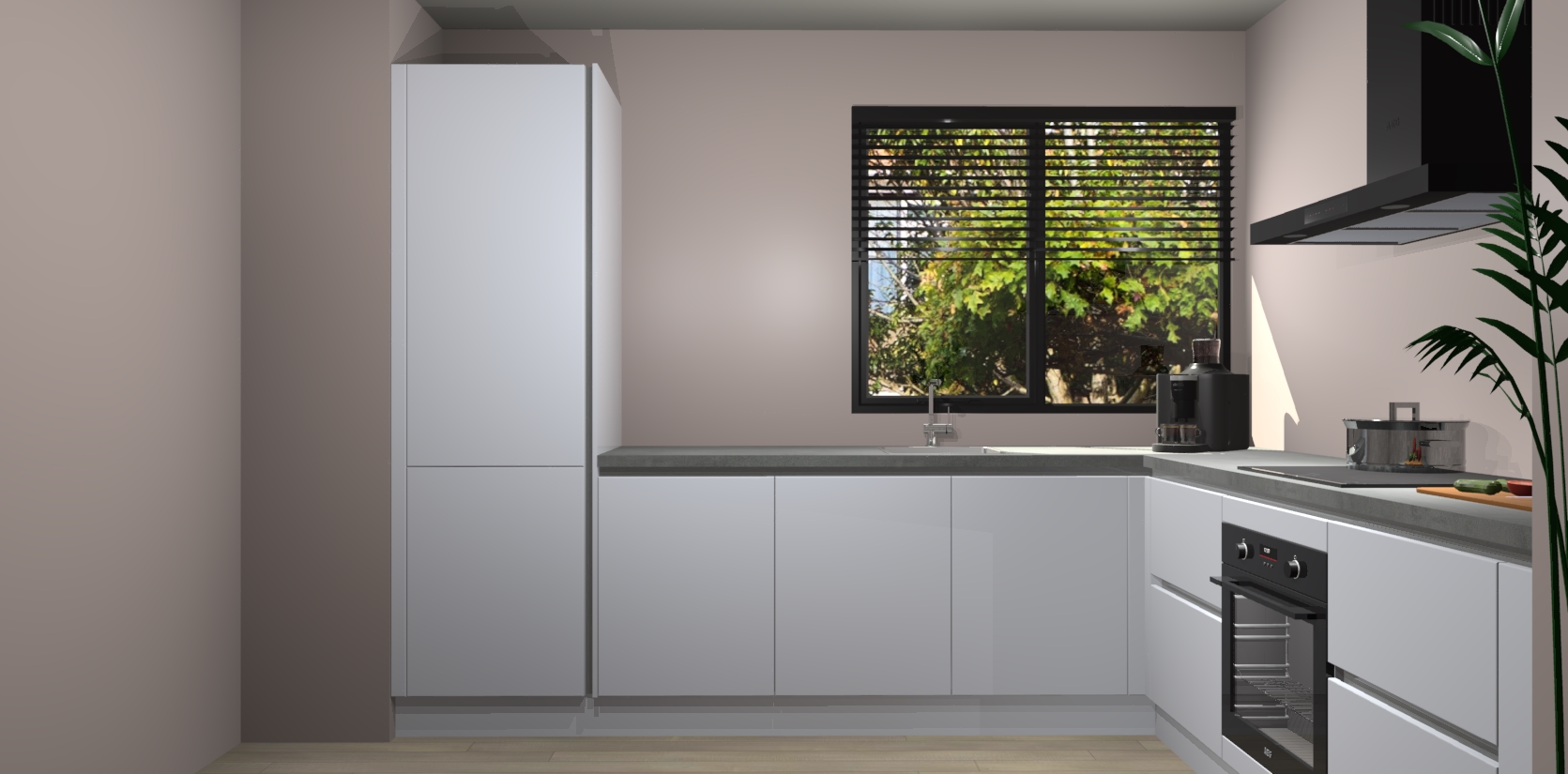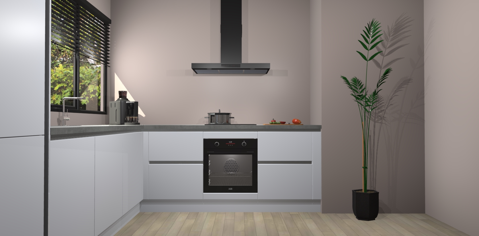 Met een modern, tijdloos design en ruime opslagruimte, zult u zich in no-time thuis voelen in uw nieuwe keuken. Uw leven wordt eenvoudiger met de soft-close deuren die voor het ultieme stille comfort zorgen - geen geluid dat u stoort terwijl u kookt. Ook is de keuken voorzien van 5 ingebouwde apparaten: een oven, inductie kookplaat, afzuigkap, vaatwasser en koelkast. Deze kunnen gemakkelijk na bestelling worden bijgewerkt naar AEG - waardoor uw luxe ervaring compleet is.