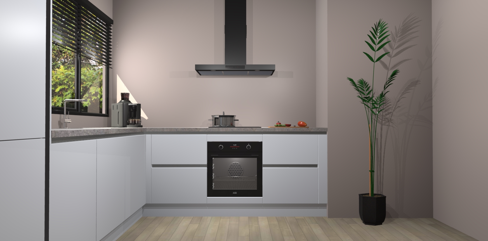Met een modern, tijdloos design en ruime opslagruimte, zult u zich in no-time thuis voelen in uw nieuwe keuken. Uw leven wordt eenvoudiger met de soft-close deuren die voor het ultieme stille comfort zorgen - geen geluid dat u stoort terwijl u kookt. Ook is de keuken voorzien van 5 ingebouwde apparaten: een oven, inductie kookplaat, afzuigkap, vaatwasser en koelkast. Deze kunnen gemakkelijk na bestelling worden bijgewerkt naar AEG - waardoor uw luxe ervaring compleet is.