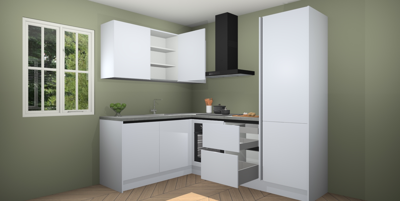 In deze box zijn alle kleuren verzameld van de deuren en werkbladen. Vraag de gratis kleurenbox aan en kijk thuis rustig verder!