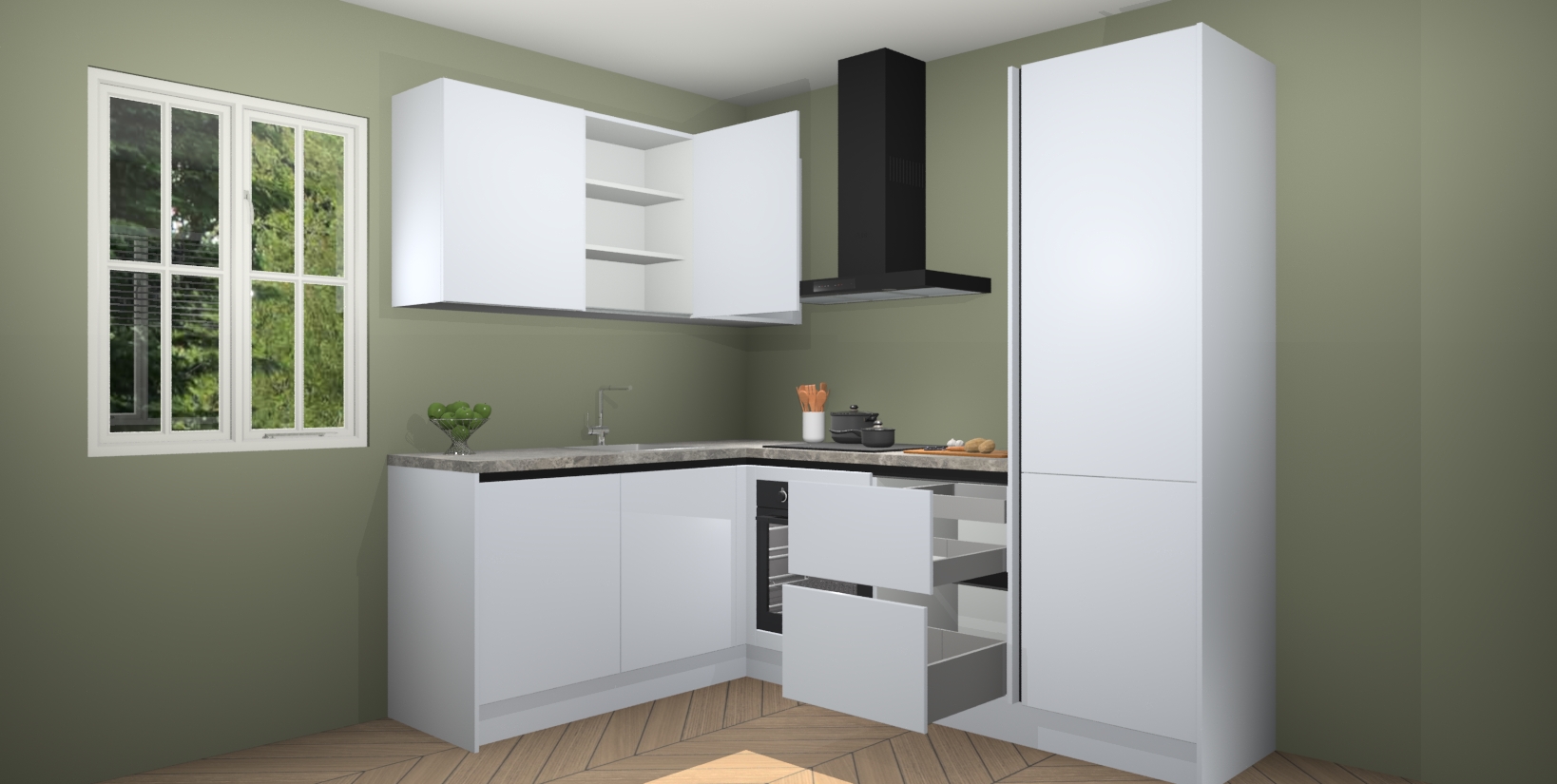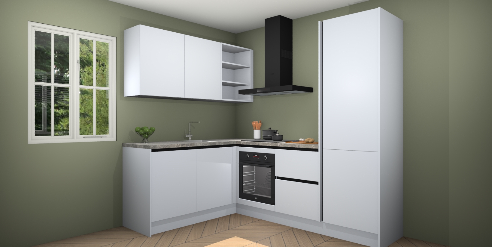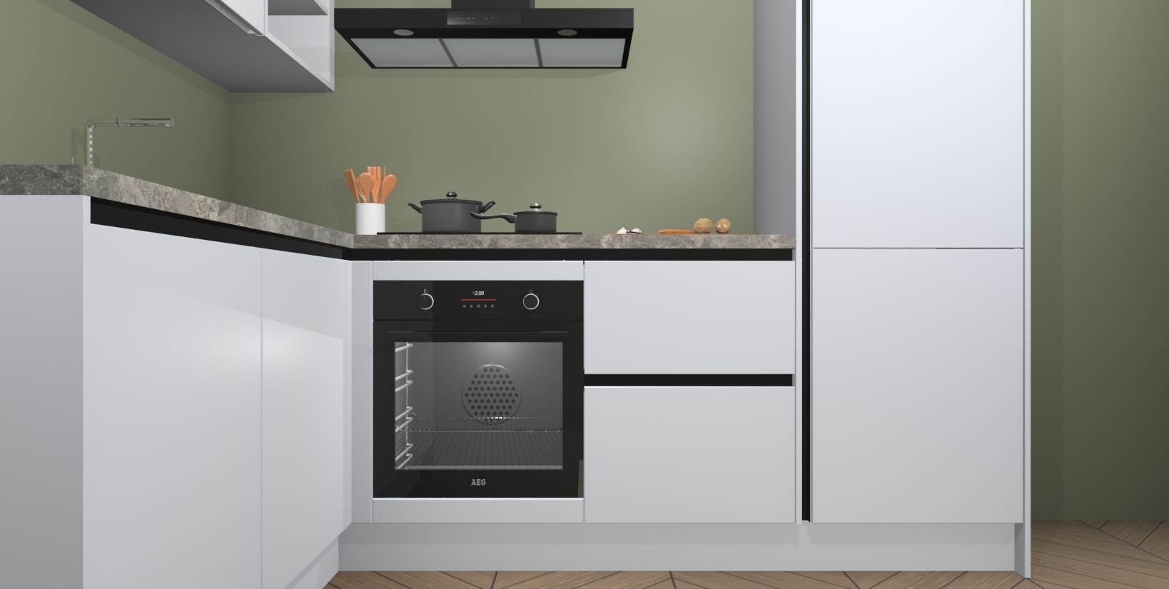 Voor nog meer gemak heeft deze keuken vijf ingebouwde apparaten - oven, inductiekookplaat, afzuigkap, vaatwasser en koelkast. Bovendien hebben alle kasten softclose deuren voor extra comfort bij het sluiten. Dit alles voor een verrassend lage vaste prijs - u vindt nergens anders een betere deal!