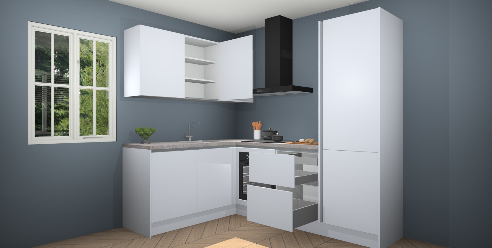 In deze box zijn alle kleuren verzameld van de deuren en werkbladen. Vraag de gratis kleurenbox aan en kijk thuis rustig verder!
