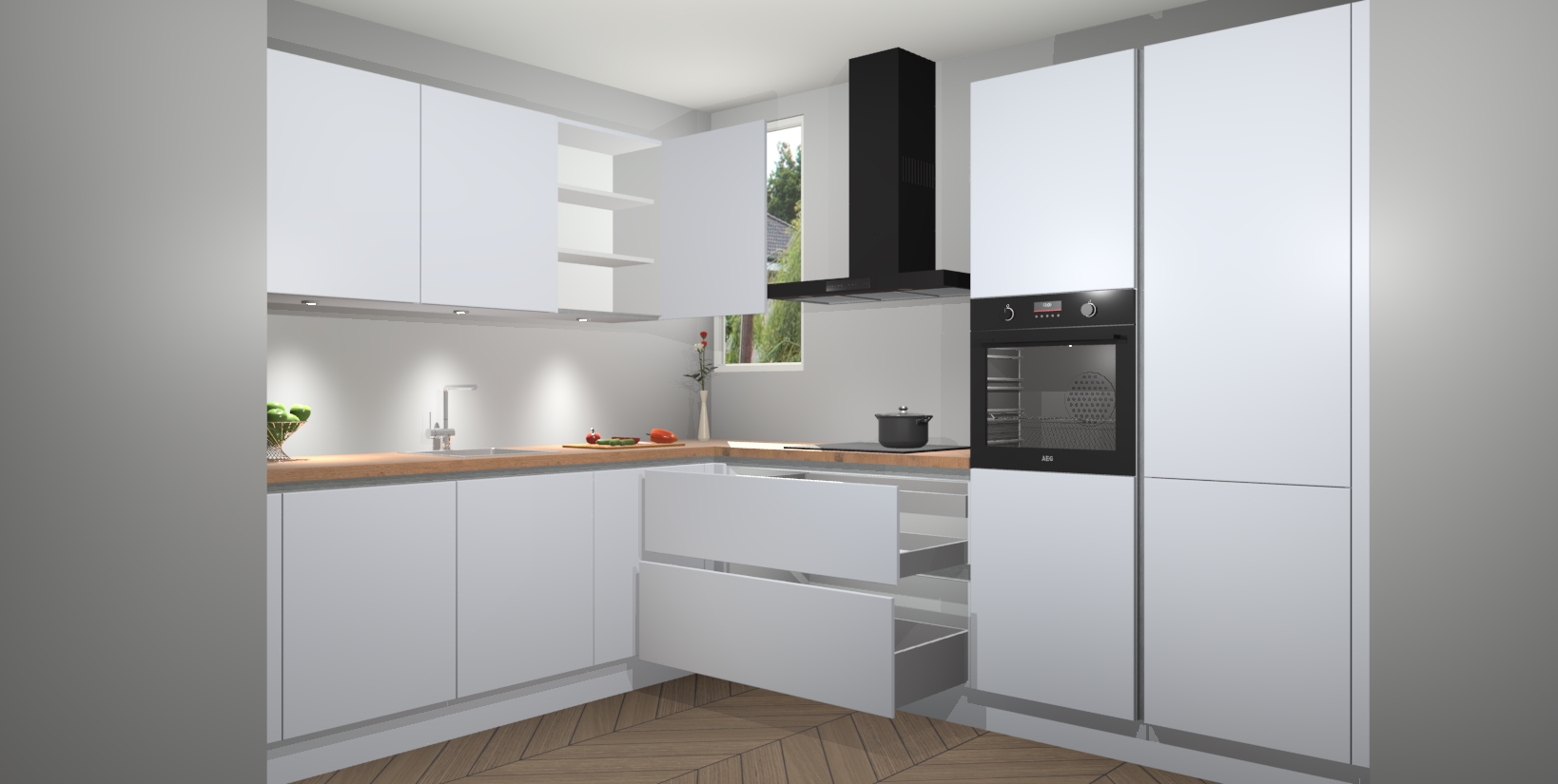 In deze box zijn alle kleuren verzameld van de deuren en werkbladen. Vraag de gratis kleurenbox aan en kijk thuis rustig verder!