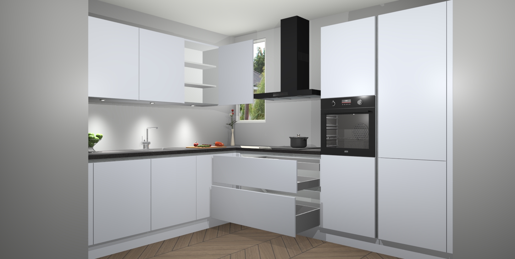 De ruime opbergruimte van dit model maakt het bereiden van voedsel en het gebruik van apparaten snel en gemakkelijk. Het beste van alles is dat het wordt geleverd met vijf inbouwapparaten: een oven, inductiekookplaat, afzuigkap, vaatwasser en koelkast - die allemaal gemakkelijk kunnen worden opgewaardeerd naar AEG na aankoop. Wat de gemaksfactor nog groter maakt, is het feit dat alle cabines voorgemonteerd worden geleverd, zodat u er meteen mee aan de slag kunt!