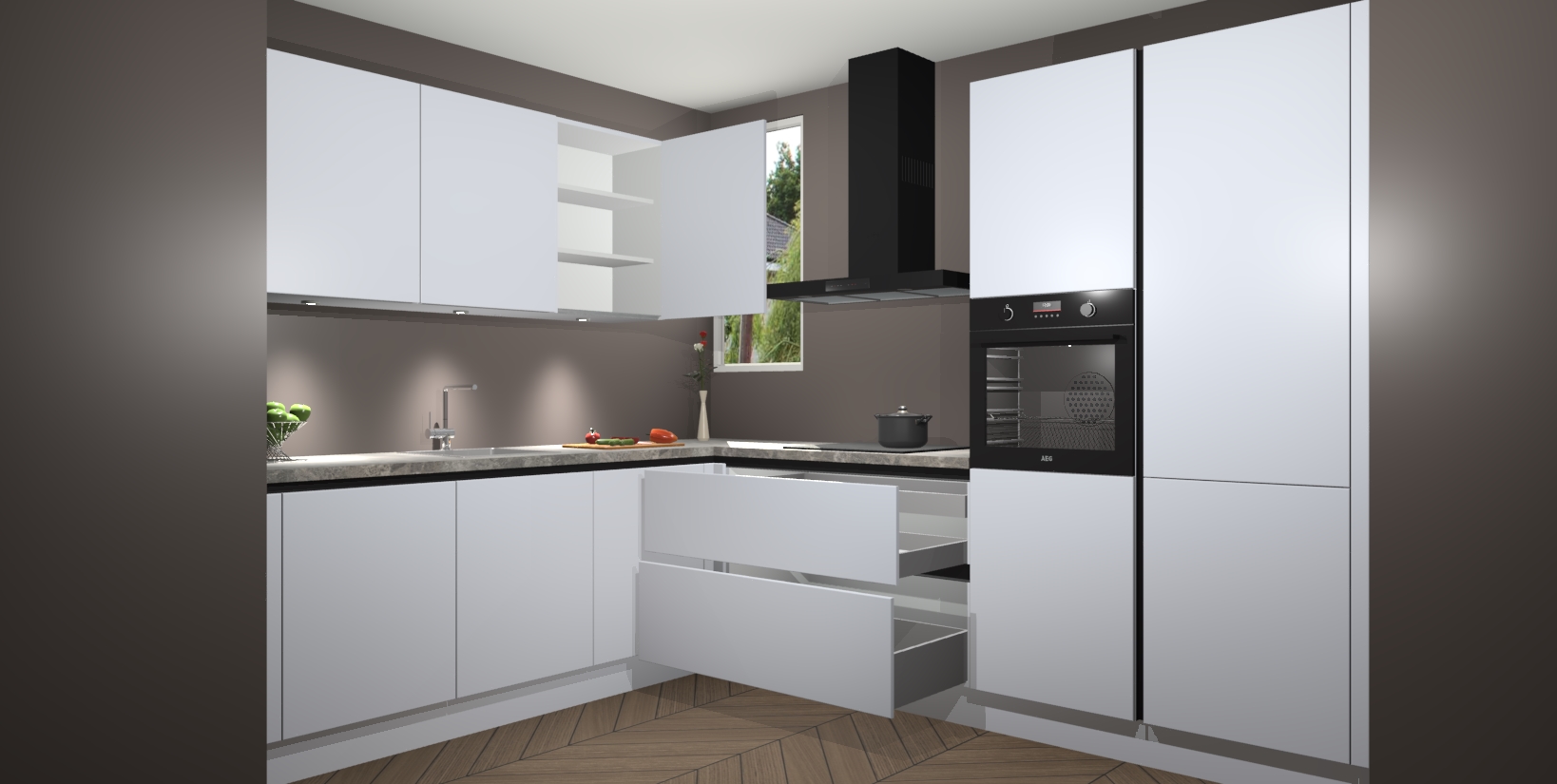 In deze box zijn alle kleuren verzameld van de deuren en werkbladen. Vraag de gratis kleurenbox aan en kijk thuis rustig verder!