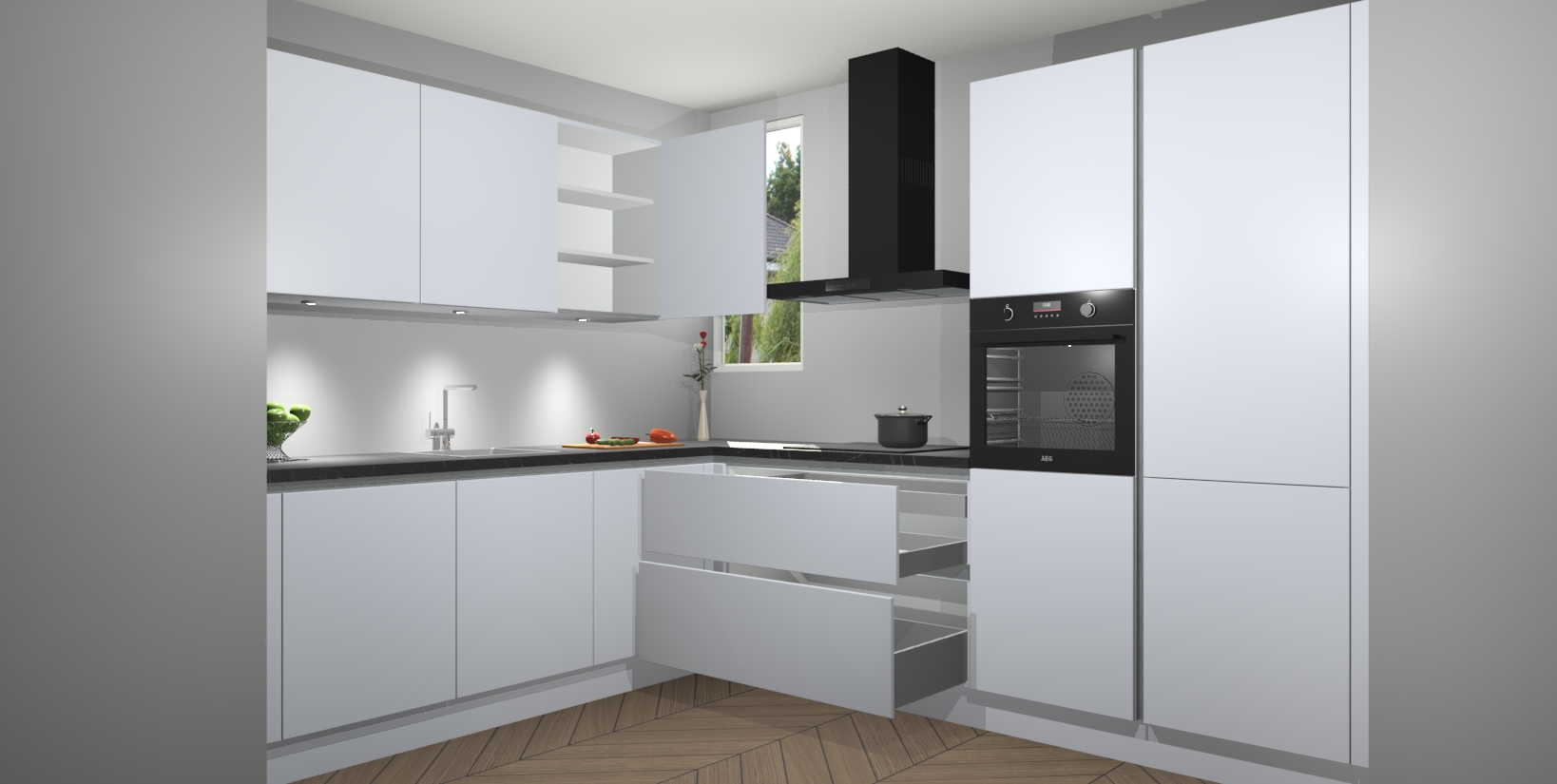 De ruime opbergruimte van dit model maakt het bereiden van voedsel en het gebruik van apparaten snel en gemakkelijk. Het beste van alles is dat het wordt geleverd met vijf inbouwapparaten: een oven, inductiekookplaat, afzuigkap, vaatwasser en koelkast - die allemaal gemakkelijk kunnen worden opgewaardeerd naar AEG na aankoop. Wat de gemaksfactor nog groter maakt, is het feit dat alle cabines voorgemonteerd worden geleverd, zodat u er meteen mee aan de slag kunt!