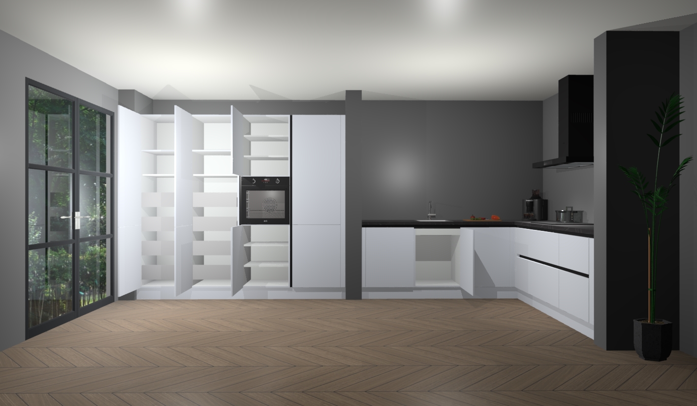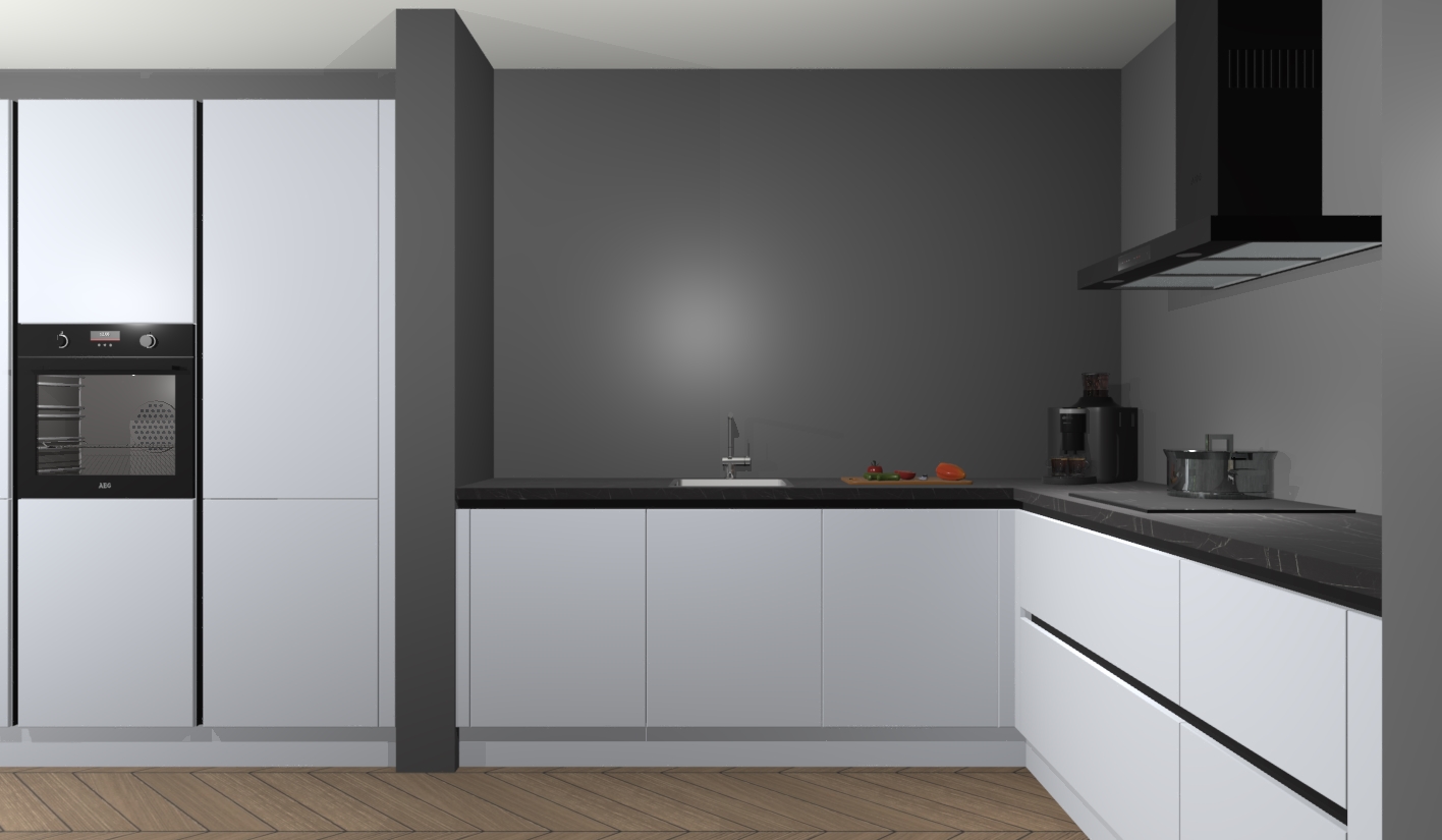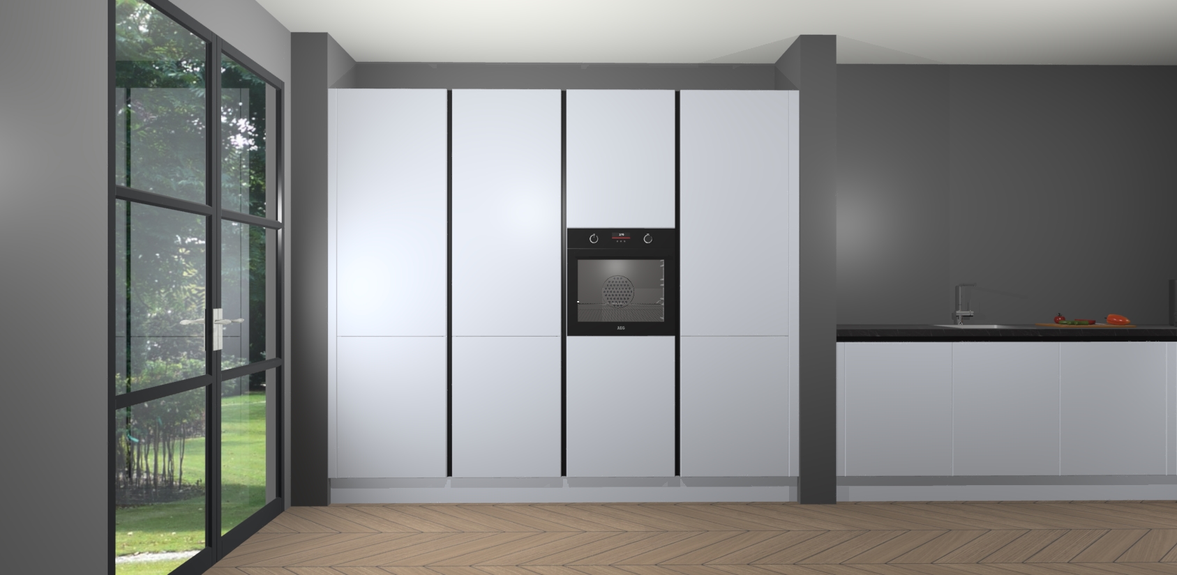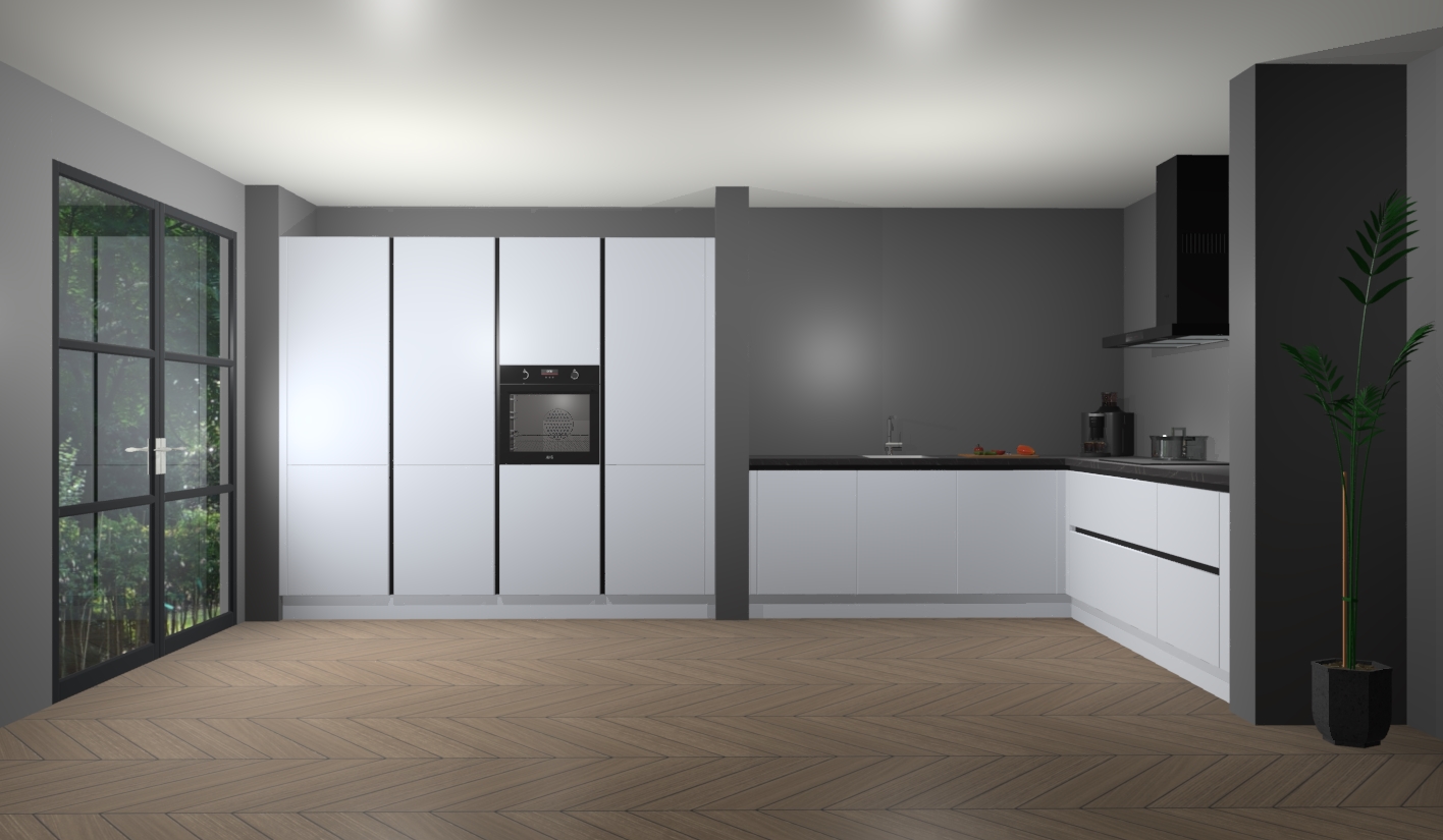 Met een modern, tijdloos design en ruime opslagruimte, zult u zich in no-time thuis voelen in uw nieuwe keuken. Uw leven wordt eenvoudiger met de soft-close deuren die voor het ultieme stille comfort zorgen - geen geluid dat u stoort terwijl u kookt. Ook is de keuken voorzien van 5 ingebouwde apparaten: een oven, inductie kookplaat, afzuigkap, vaatwasser en koelkast. Deze kunnen gemakkelijk na bestelling worden bijgewerkt naar AEG - waardoor uw luxe ervaring compleet is.