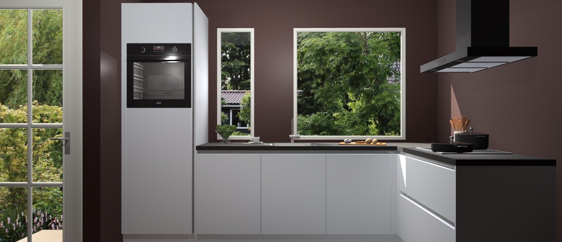 Deze complete keuken wordt geleverd met 5 inbouwapparaten: een oven, inductiekookplaat, afzuigkap, vaatwasser en koelkast. De toestellen kunnen na bestelling ook gemakkelijk worden opgewaardeerd naar AEG. Bovendien is elke deur in deze keuken voorzien van handige softclose technologie voor eenvoudig gebruik! Als een leuke toevoeging zit in deze keuken ook een carrousel, zo hoef je niet meer de hoek in duiken om iets te pakken.
