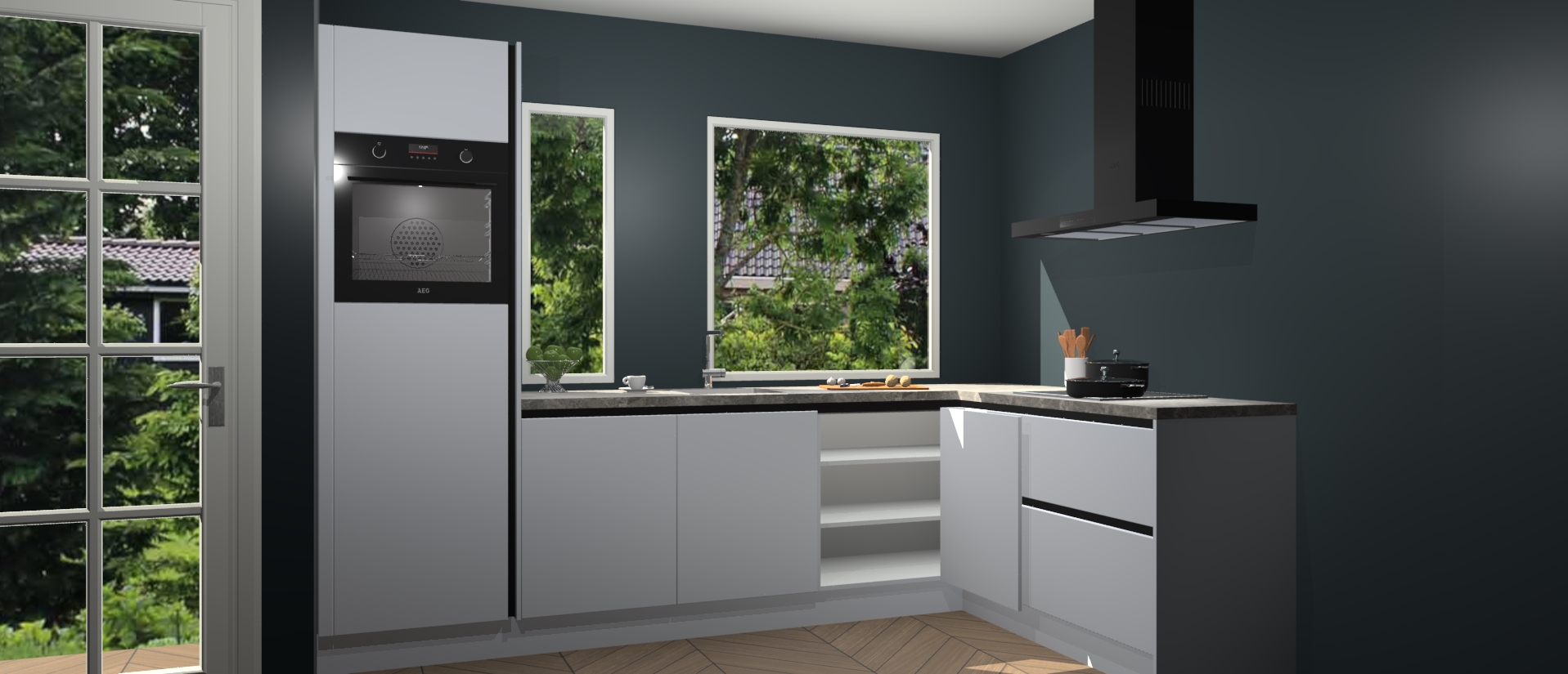 Deze complete keuken wordt geleverd met 5 inbouwapparaten: een oven, inductiekookplaat, afzuigkap, vaatwasser en koelkast. De toestellen kunnen na bestelling ook gemakkelijk worden opgewaardeerd naar AEG. Bovendien is elke deur in deze keuken voorzien van handige softclose technologie voor eenvoudig gebruik! Als een leuke toevoeging zit in deze keuken ook een carrousel, zo hoef je niet meer de hoek in duiken om iets te pakken.