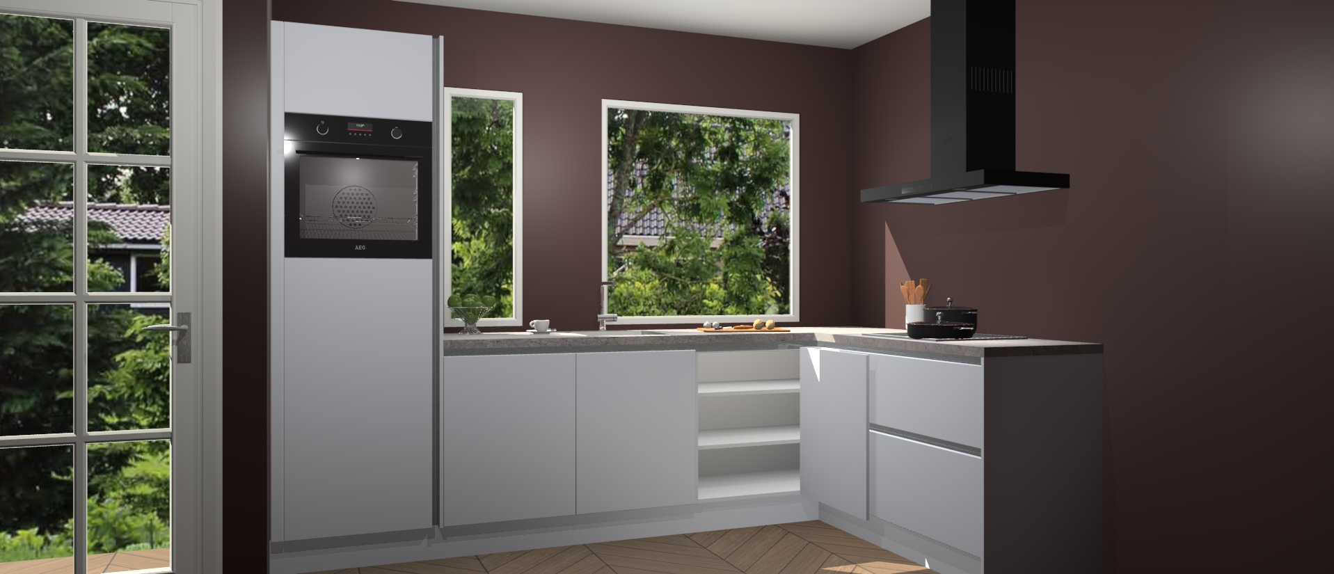 Deze complete keuken wordt geleverd met 5 inbouwapparaten: een oven, inductiekookplaat, afzuigkap, vaatwasser en koelkast. De toestellen kunnen na bestelling ook gemakkelijk worden opgewaardeerd naar AEG. Bovendien is elke deur in deze keuken voorzien van handige softclose technologie voor eenvoudig gebruik! Als een leuke toevoeging zit in deze keuken ook een carrousel, zo hoef je niet meer de hoek in duiken om iets te pakken.