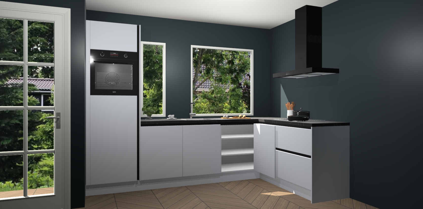 Deze complete keuken wordt geleverd met 5 inbouwapparaten: een oven, inductiekookplaat, afzuigkap, vaatwasser en koelkast. De toestellen kunnen na bestelling ook gemakkelijk worden opgewaardeerd naar AEG. Bovendien is elke deur in deze keuken voorzien van handige softclose technologie voor eenvoudig gebruik! Als een leuke toevoeging zit in deze keuken ook een carrousel, zo hoef je niet meer de hoek in duiken om iets te pakken.