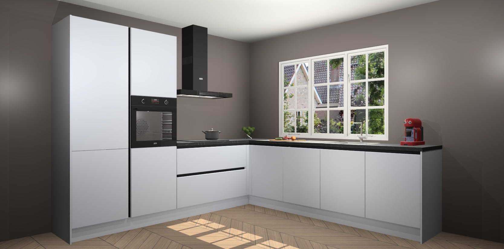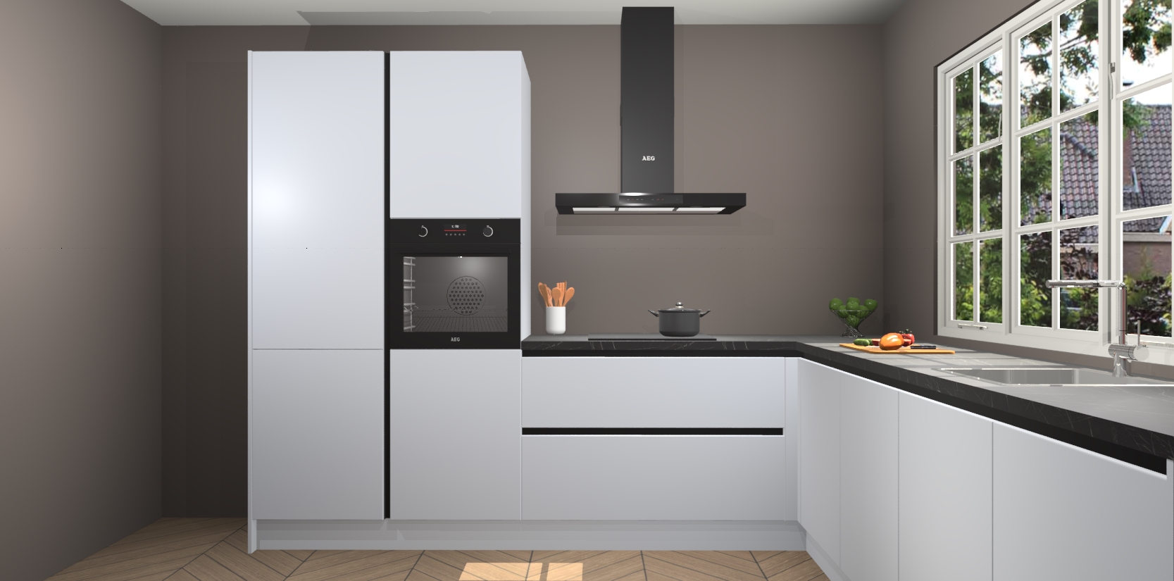 De keuken heeft veel opbergruimte, waardoor u alle ingrediënten gemakkelijk bereikbaar hebt staan. En daarnaast bevat deze volledig uitgeruste keuken ook 5 ingebouwde apparaten: een oven, inductiekookplaat, afzuigkap, vaatwasser en koelkast. Deze zijn heel eenvoudig na bestellen te upgraden naar AEG als u dit wilt. Bovendien zijn de softclose-kastdeuren ideaal; geef ze gewoon even een tikje en ze sluiten automatisch met geruisloze precisie.