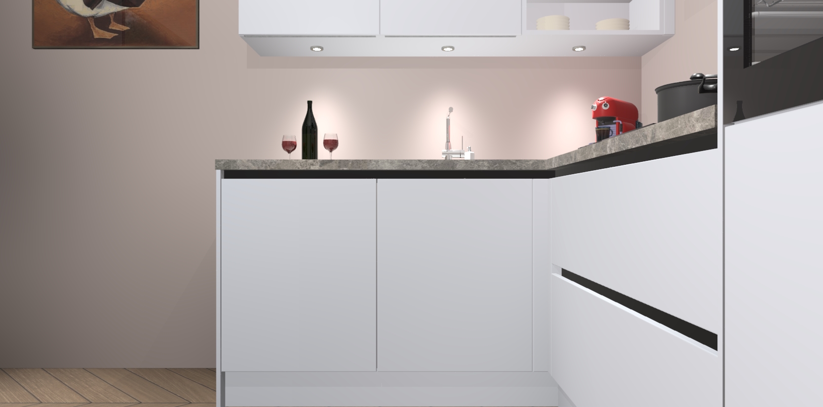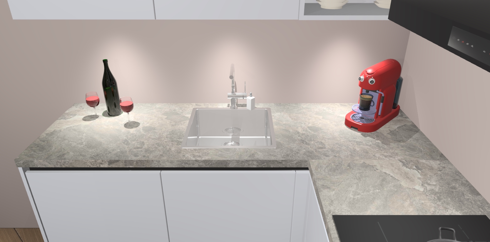 - Bij een hoekwerkblad zijn de hoeken in gevreesd en op maat gemaakt